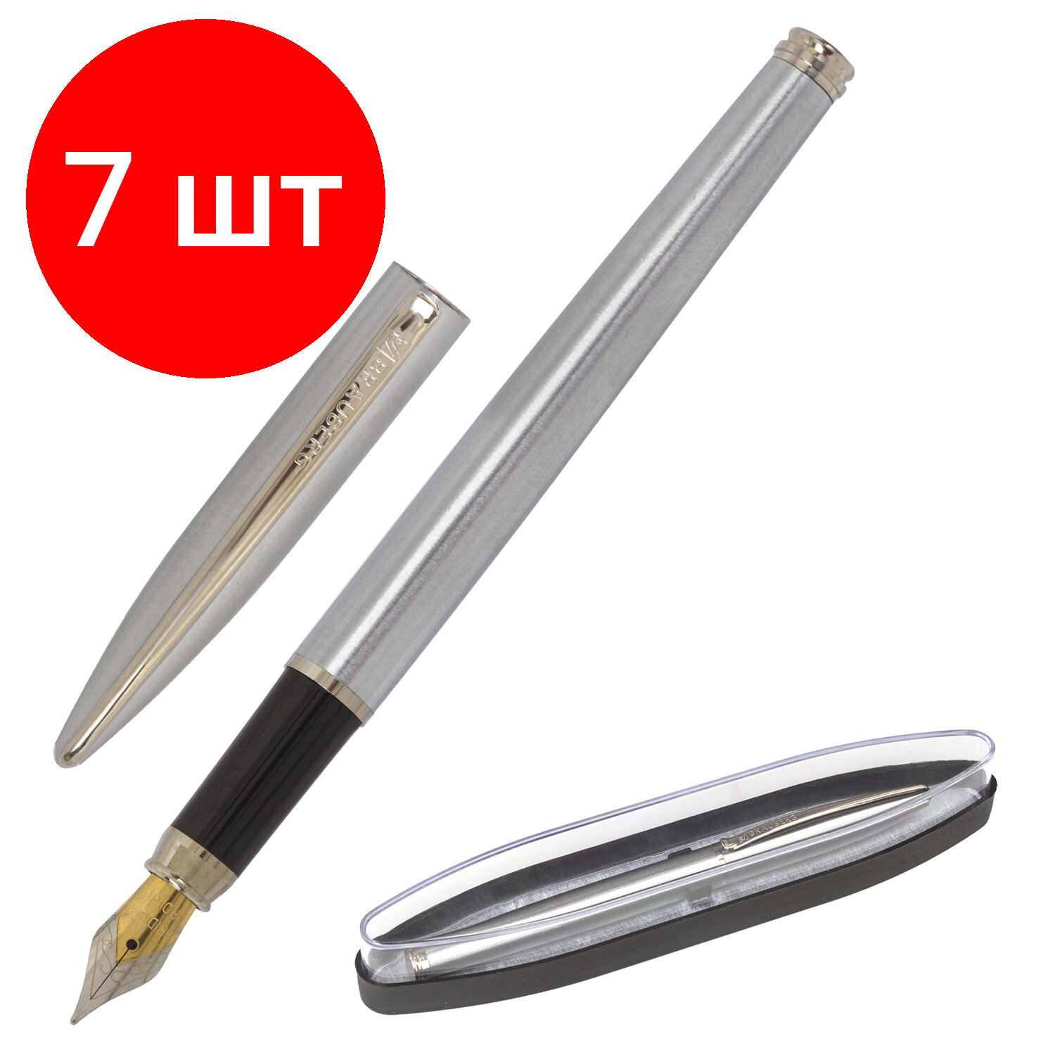Комплект 5 шт, Ручка подарочная перьевая BRAUBERG "Ballet", синяя, корпус серебистый с хромированными деталями, линия письма 0.25 мм, 143481
