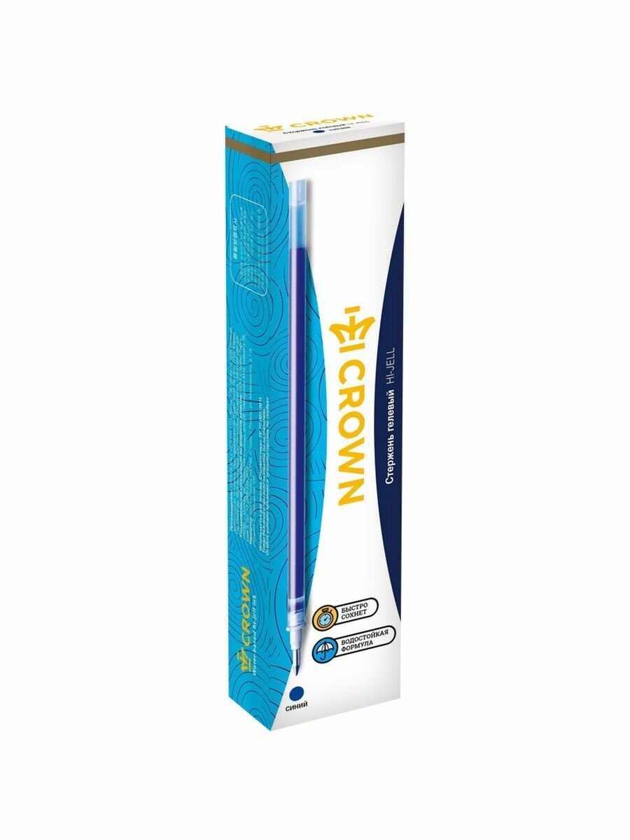 Стержень гелевый Crown "Hi-Jell" синий, 138 мм, 0,5 мм, упаковка 12 шт.