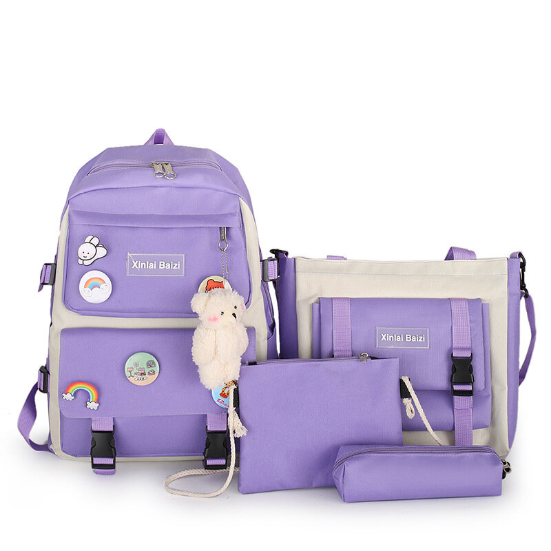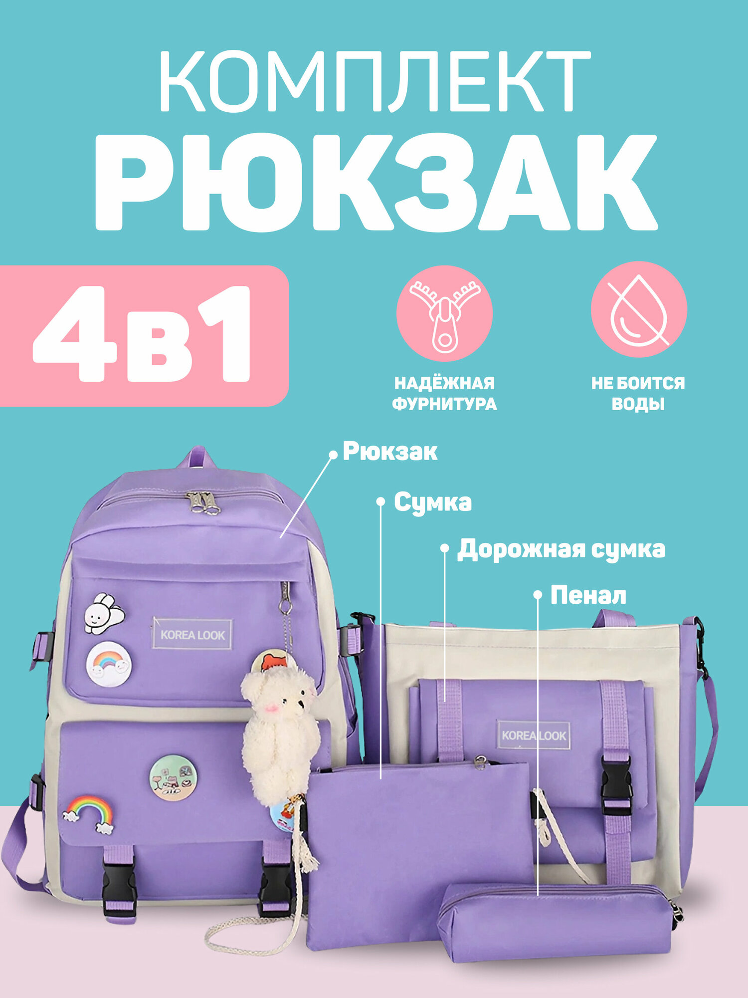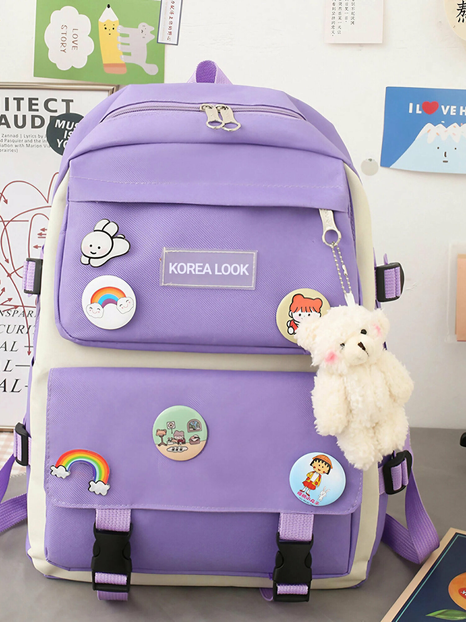 Купить Рюкзак Korea Look набор для девочек школьный новый дизайн 4 предмета (Фиолетовый)