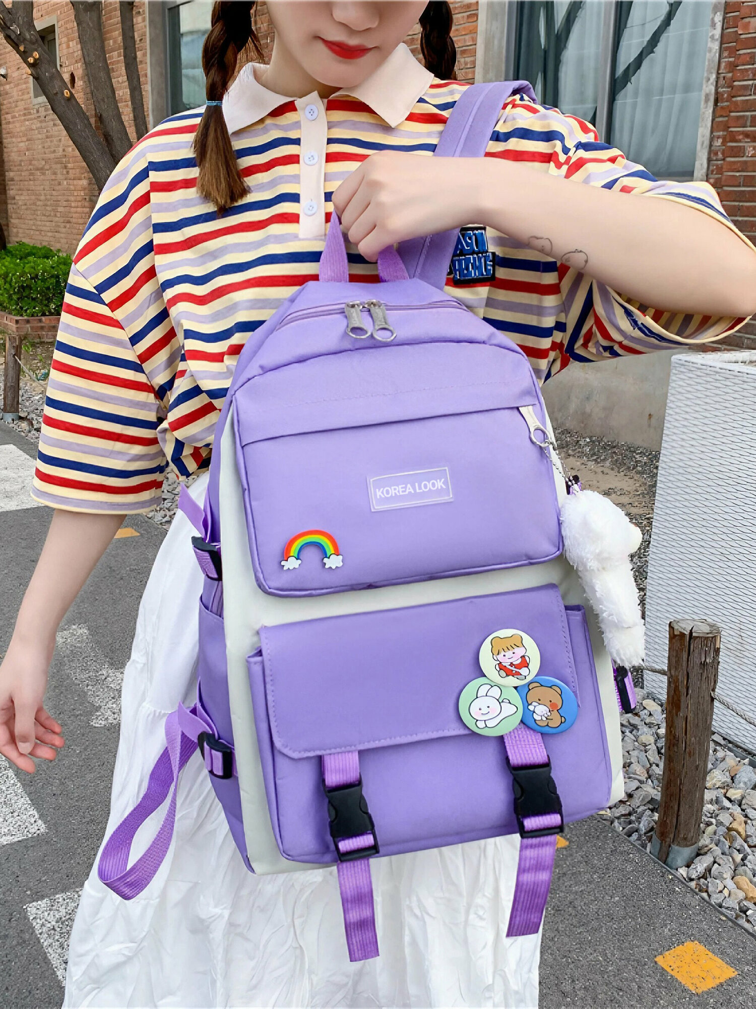 Ниже Вы можете прочитать отзывы на Рюкзак Korea Look набор для девочек школьный новый дизайн 4 предмета (Фиолетовый), ознакомится с подробными характеристиками, посмотреть интересные обзоры и фотографии на Рюкзак Korea Look набор для девочек школьный новый дизайн 4 предмета (Фиолетовый).