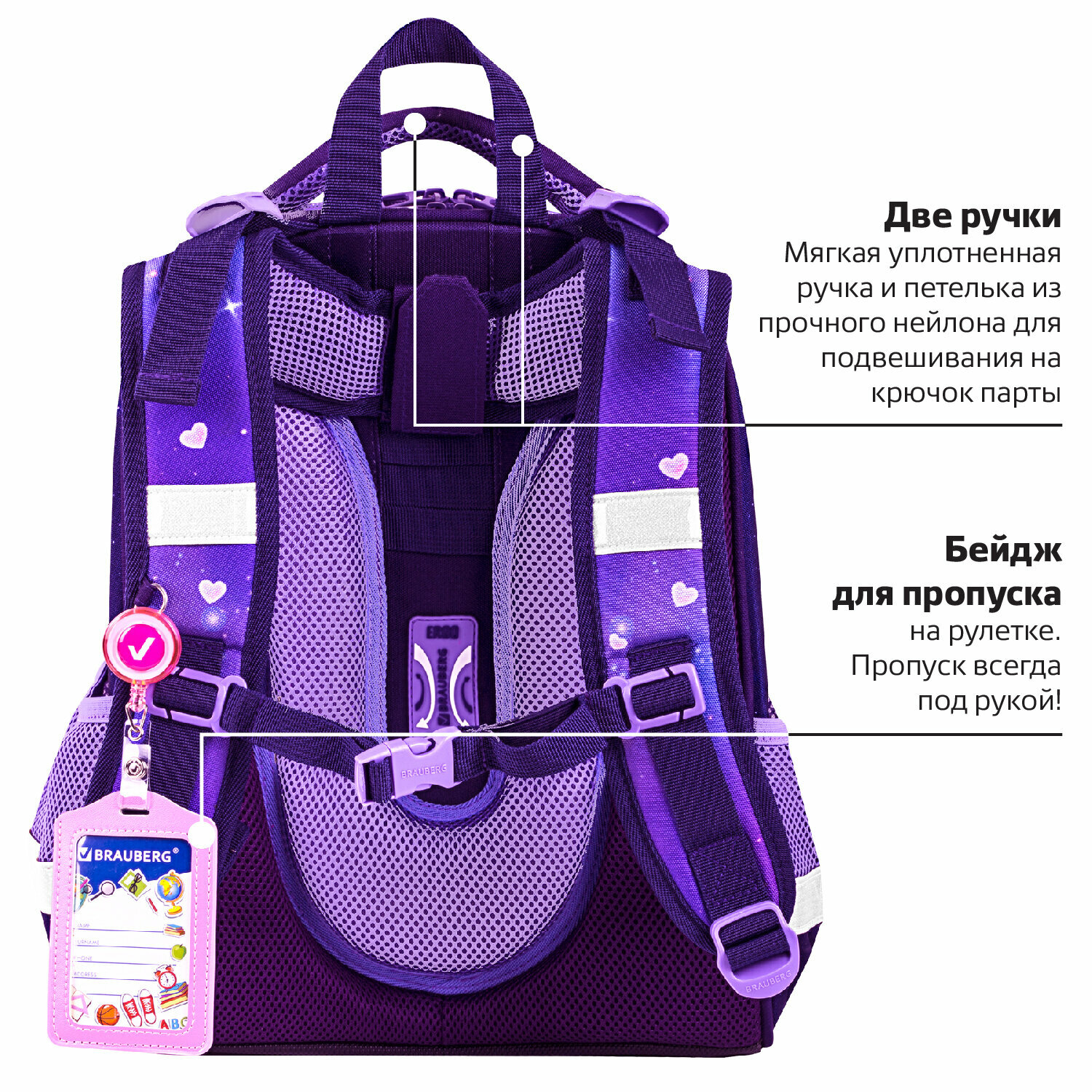 Рюкзак школьный для девочки, портфель для первоклассницы ортопедический, ранец детский в школу, 2 отд, брелок, led-лампы, Brauberg Space sweet,