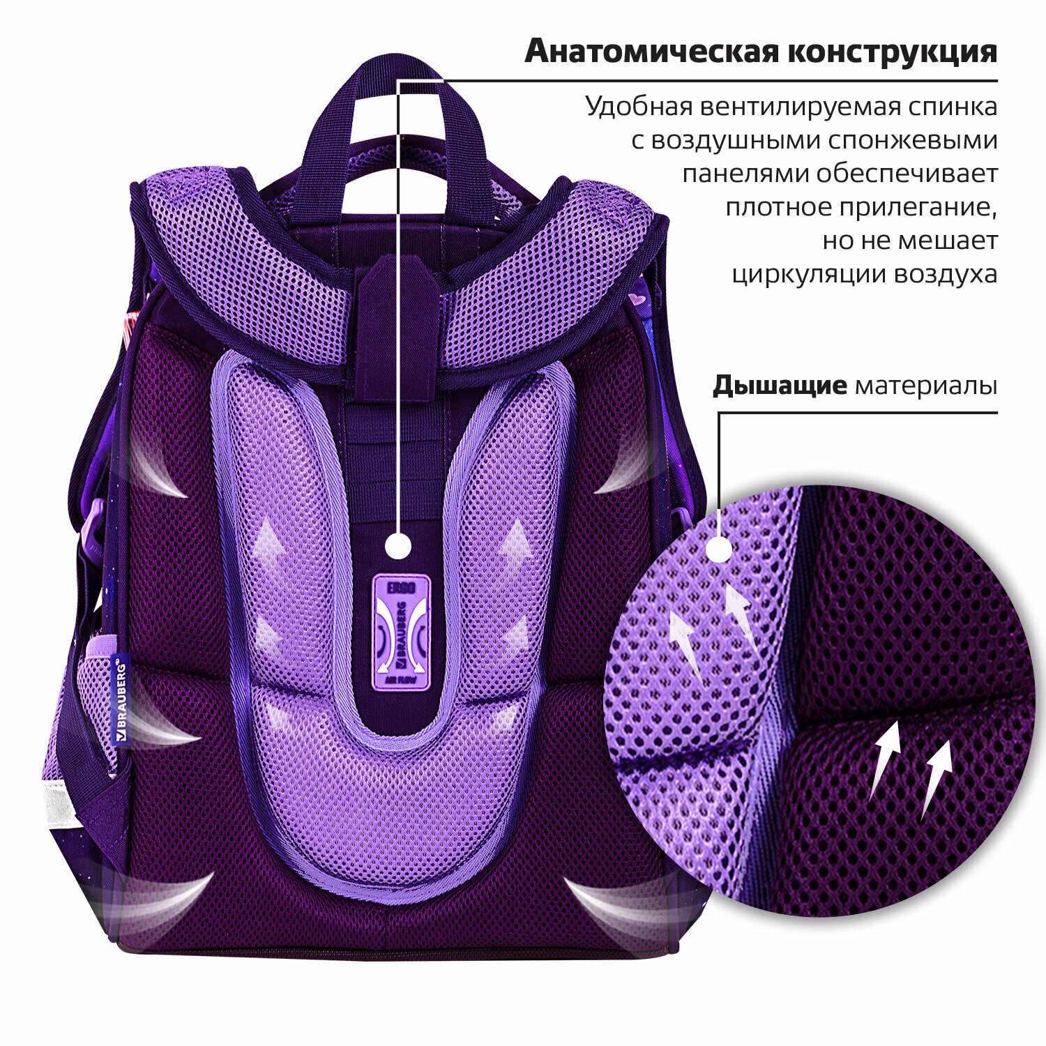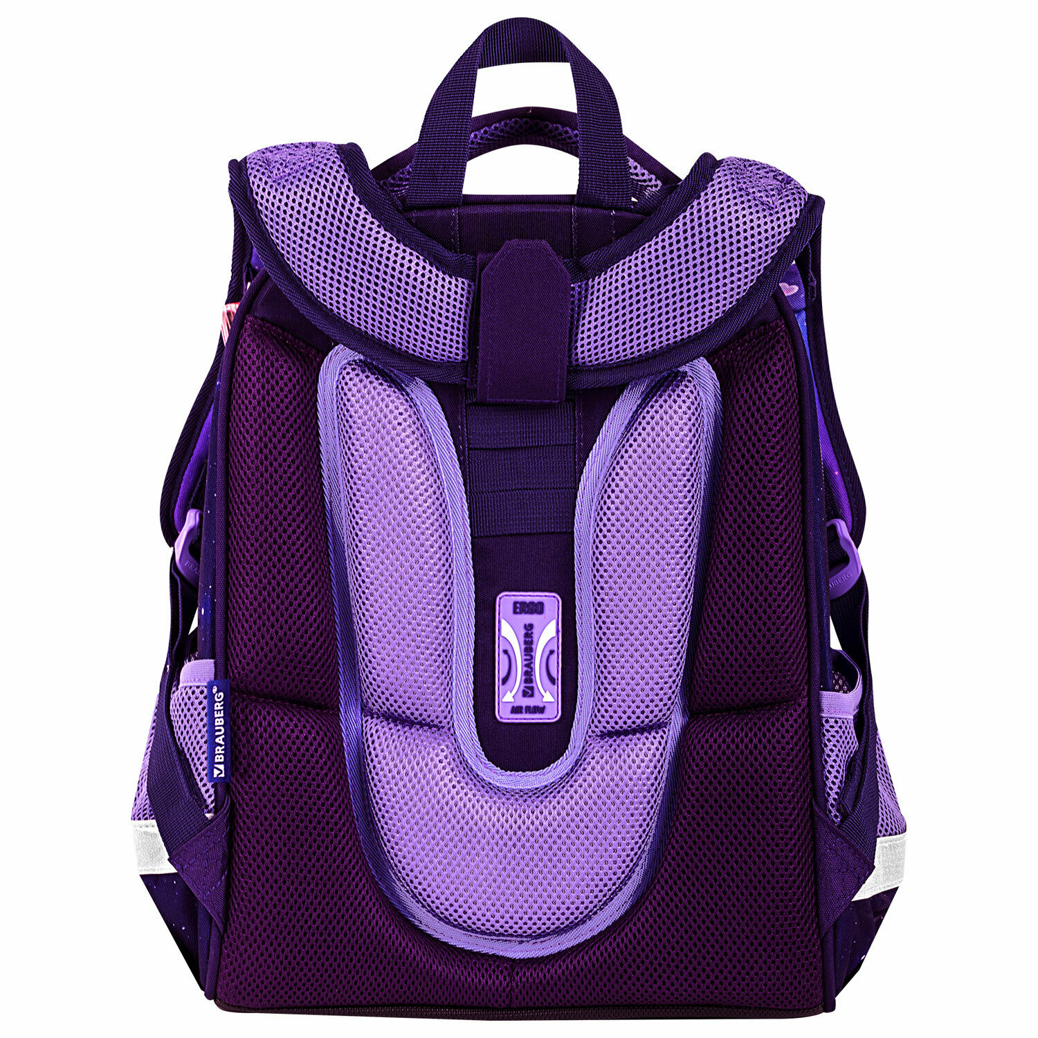Рюкзак школьный для девочки, портфель для первоклассницы ортопедический, ранец детский в школу, 2 отделения, брелок, led-лампы, Brauberg Space sweet, 272020