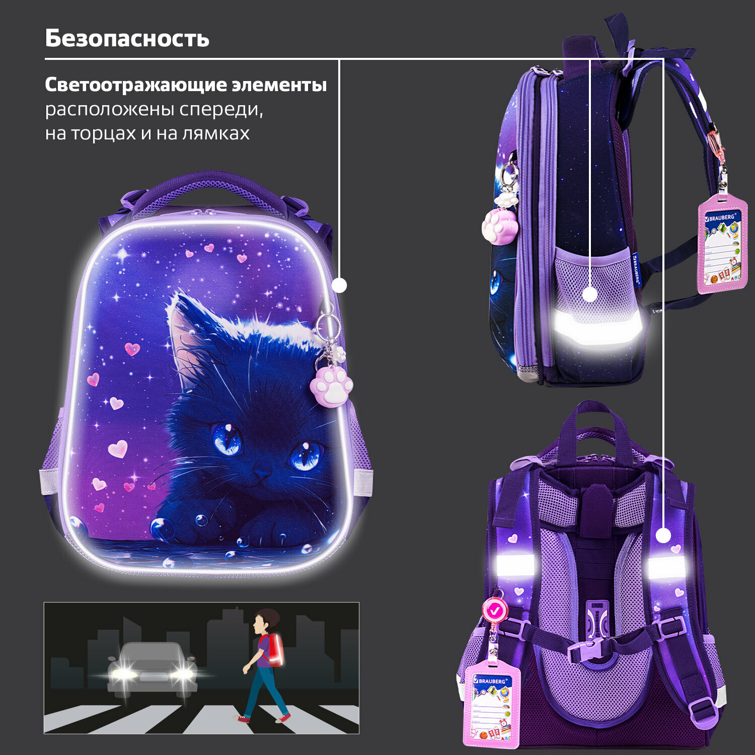 Купить Ранец BRAUBERG PREMIUM, 2 отделения, с брелоком, "Anime cat", 38х29х16 см, 272017
