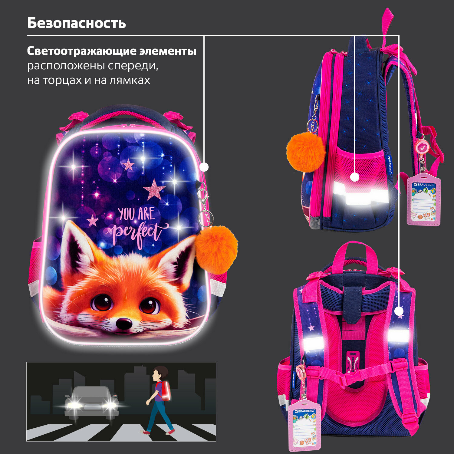 Купить Ранец BRAUBERG PREMIUM, 2 отделения, с брелоком, "Cute fox", led-лампочки, 38х29х16 см, 272019