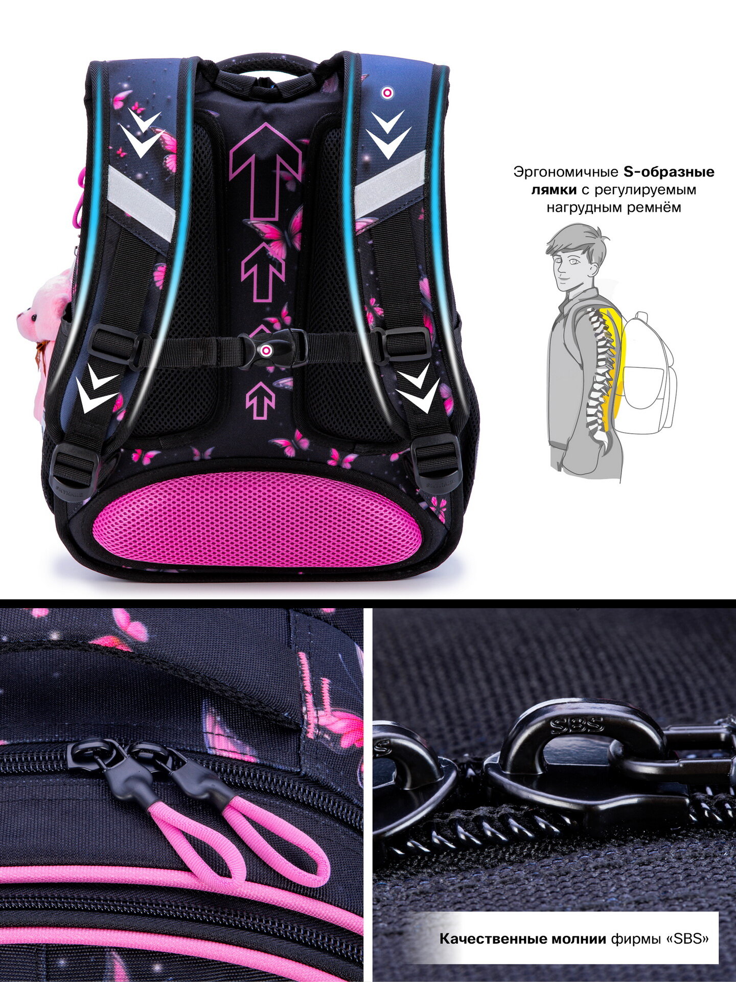 Рюкзак школьный для девочки 17.5 л для начальной школы с анатомической спинкой SkyName (СкайНейм), с мишкой интересное: