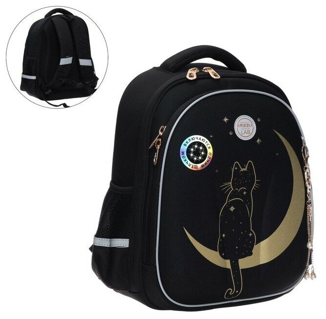 Купить Ранец Grizzly RAz-286-1/1 NIGHT CAT c брелоком 36х28х20 см
