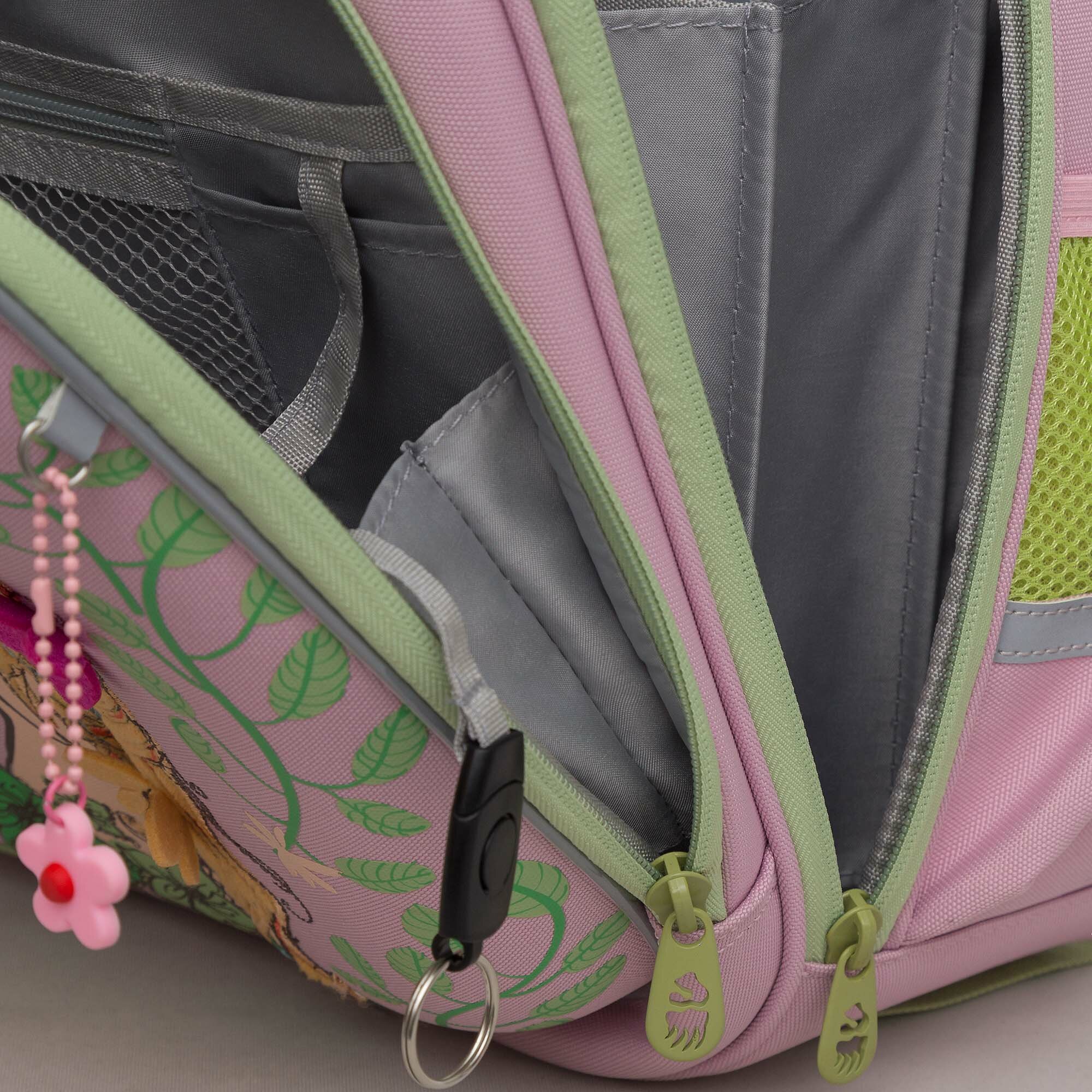Ранец школьный формованный с анатомической спинкой с брелком, для девочки (серый-розовый)