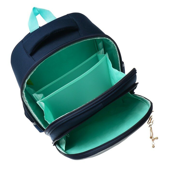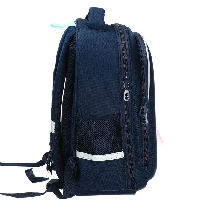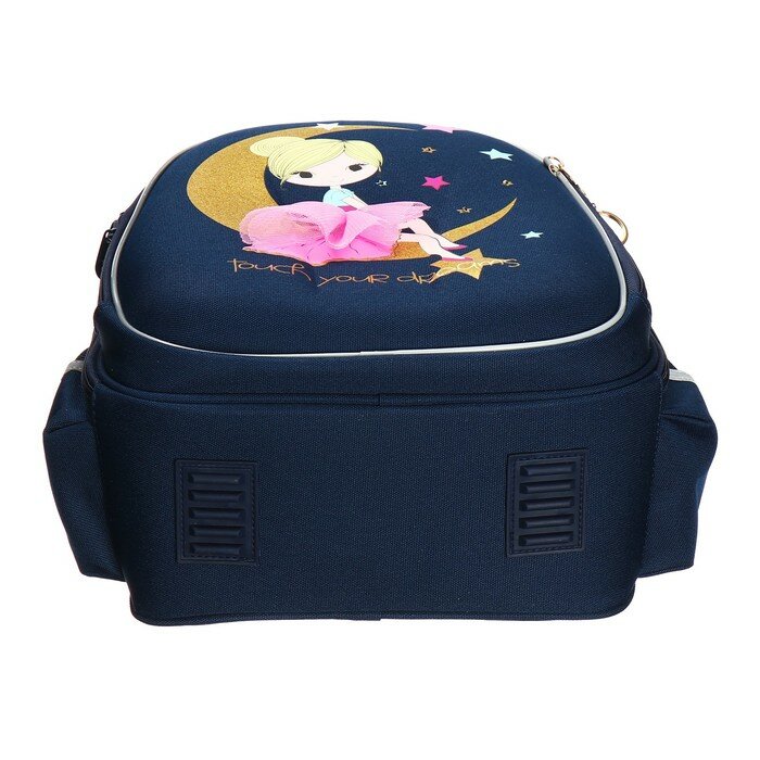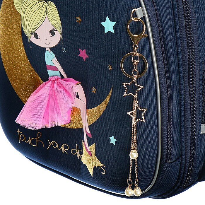 Ранец каркасный, 36 x 28 x 20 см, из плюша, + брелок, тёмно-синий/розовый