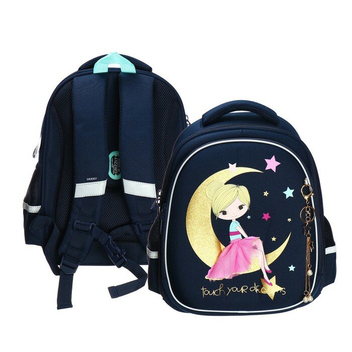 Ранец GRIZZLY анатомическая спинка, c брелоком, для девочек, COOL, 36х28х20 см, RAz-486-4/1 (272787)