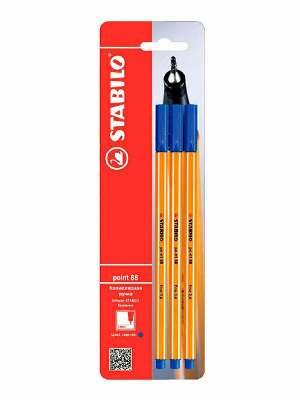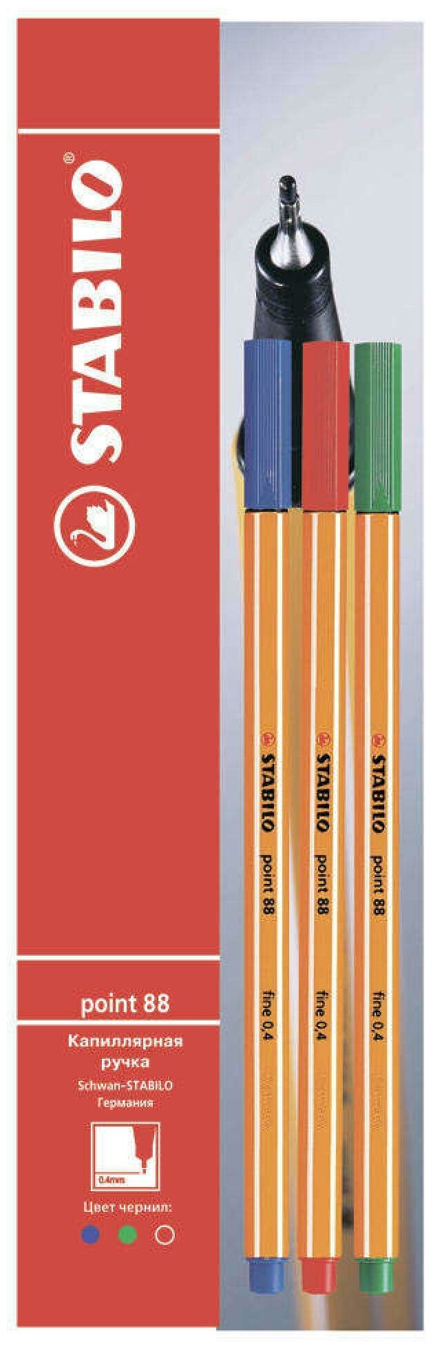 Ручка капиллярная STABILO POINT 88 0,4мм, 3шт/уп, цвет чернил синий