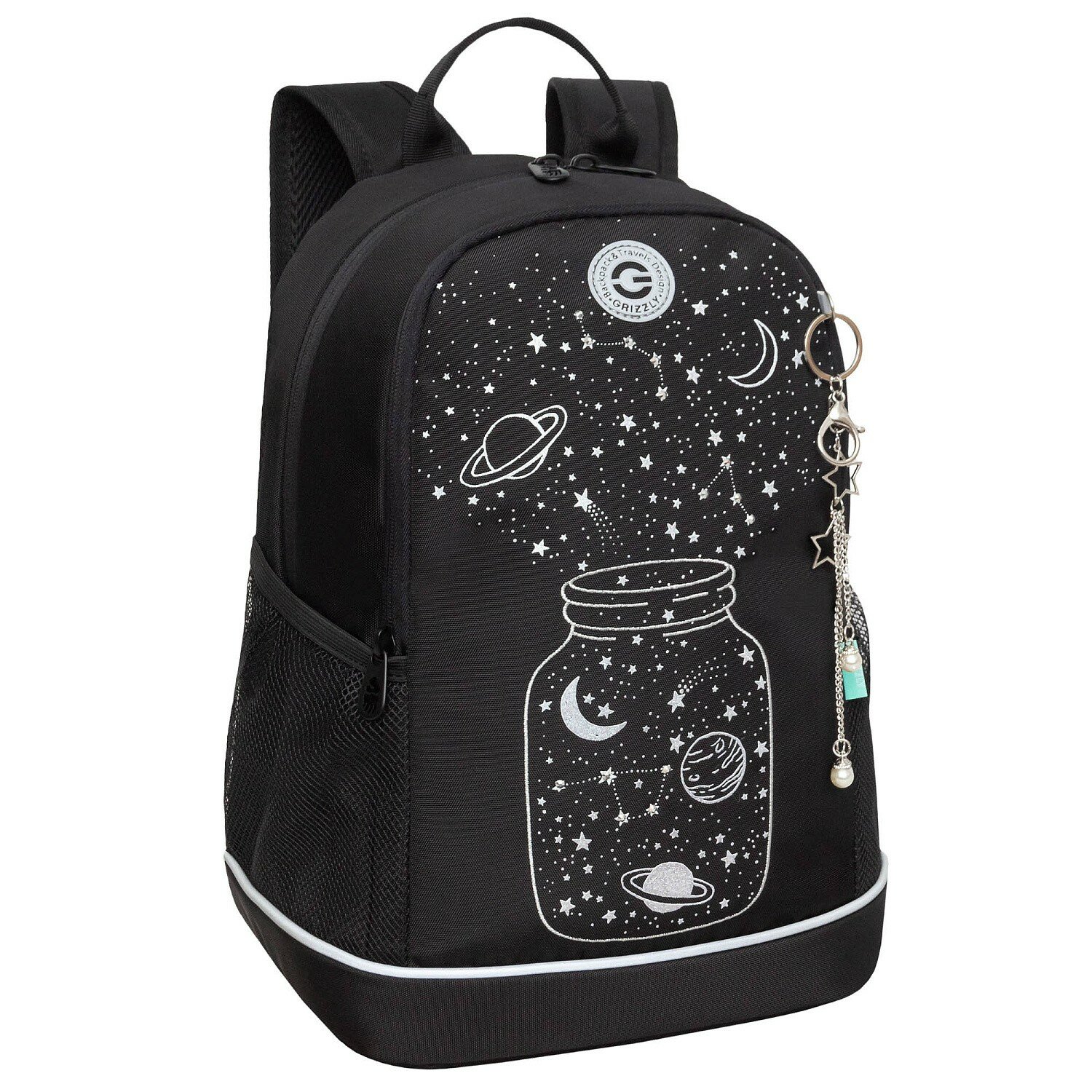 Рюкзак школьный, 38 х 28 х 18 см, Grizzly, эргономичная спинка, + брелок, чёрный