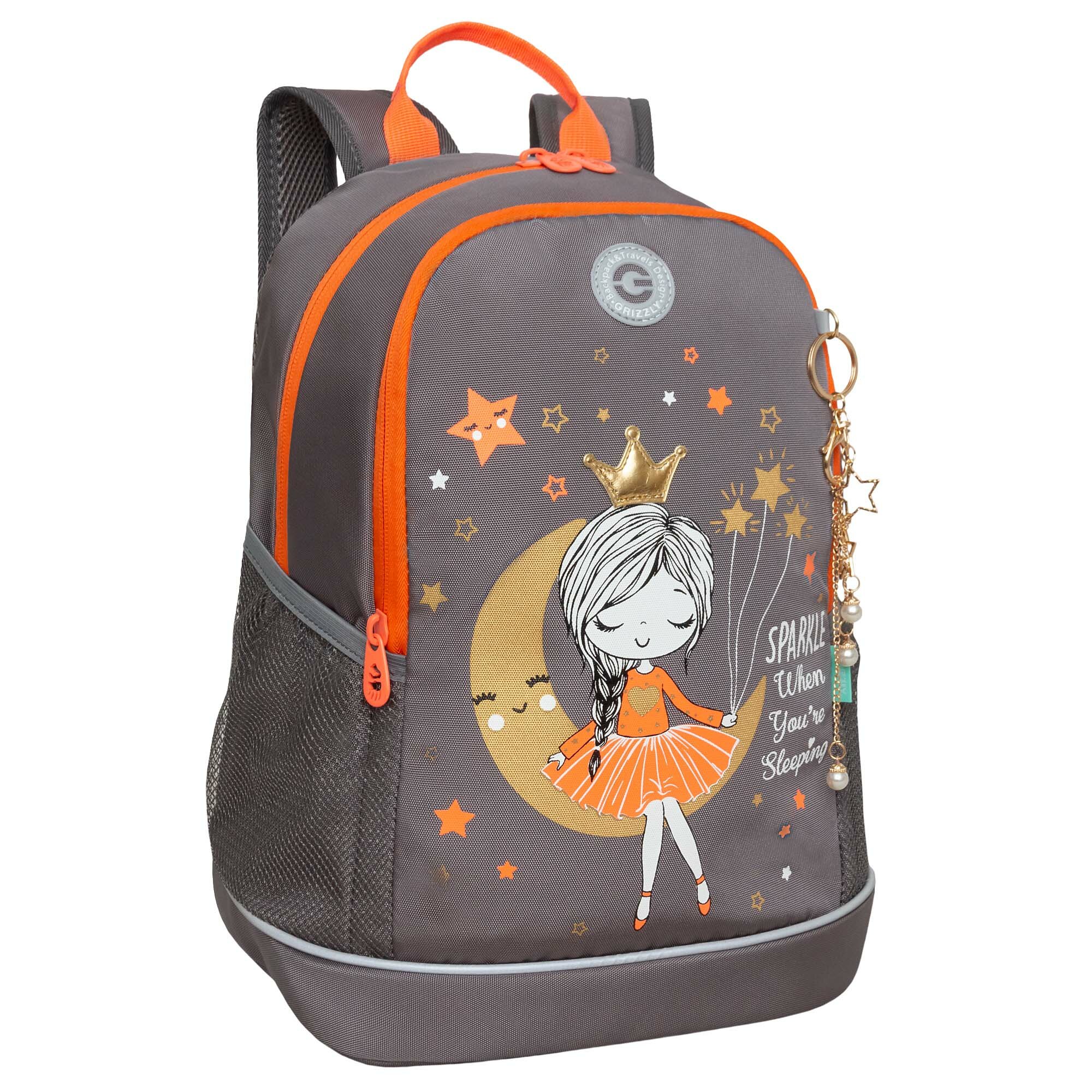 Рюкзак школьный, 38 х 28 х 18 см, Grizzly, эргономичная спинка, + брелок, чёрный