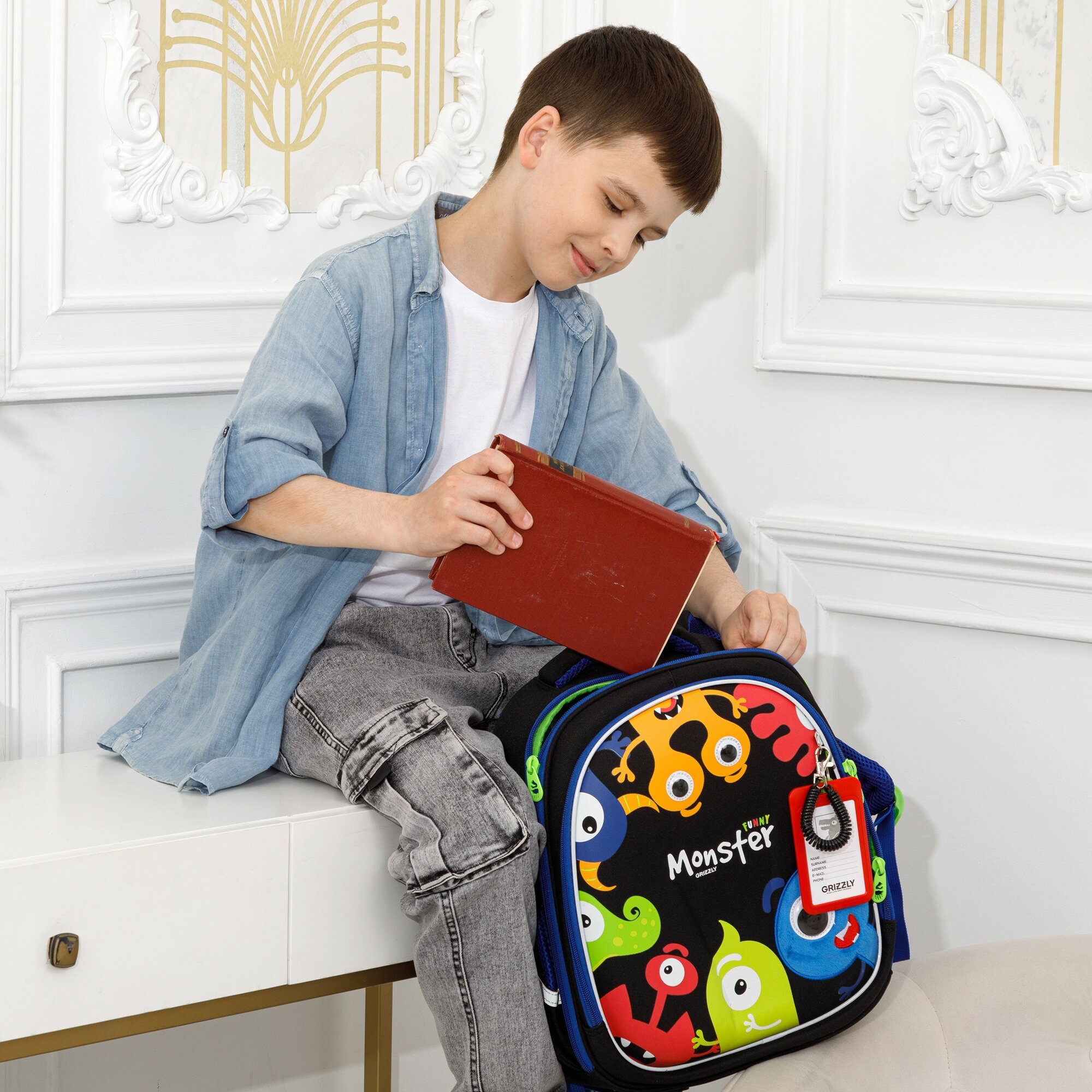 Ранец GRIZZLY анатомическая спинка, с бейджем, для мальчиков, RACER, 36х28х20 см, RAz-487-12/1