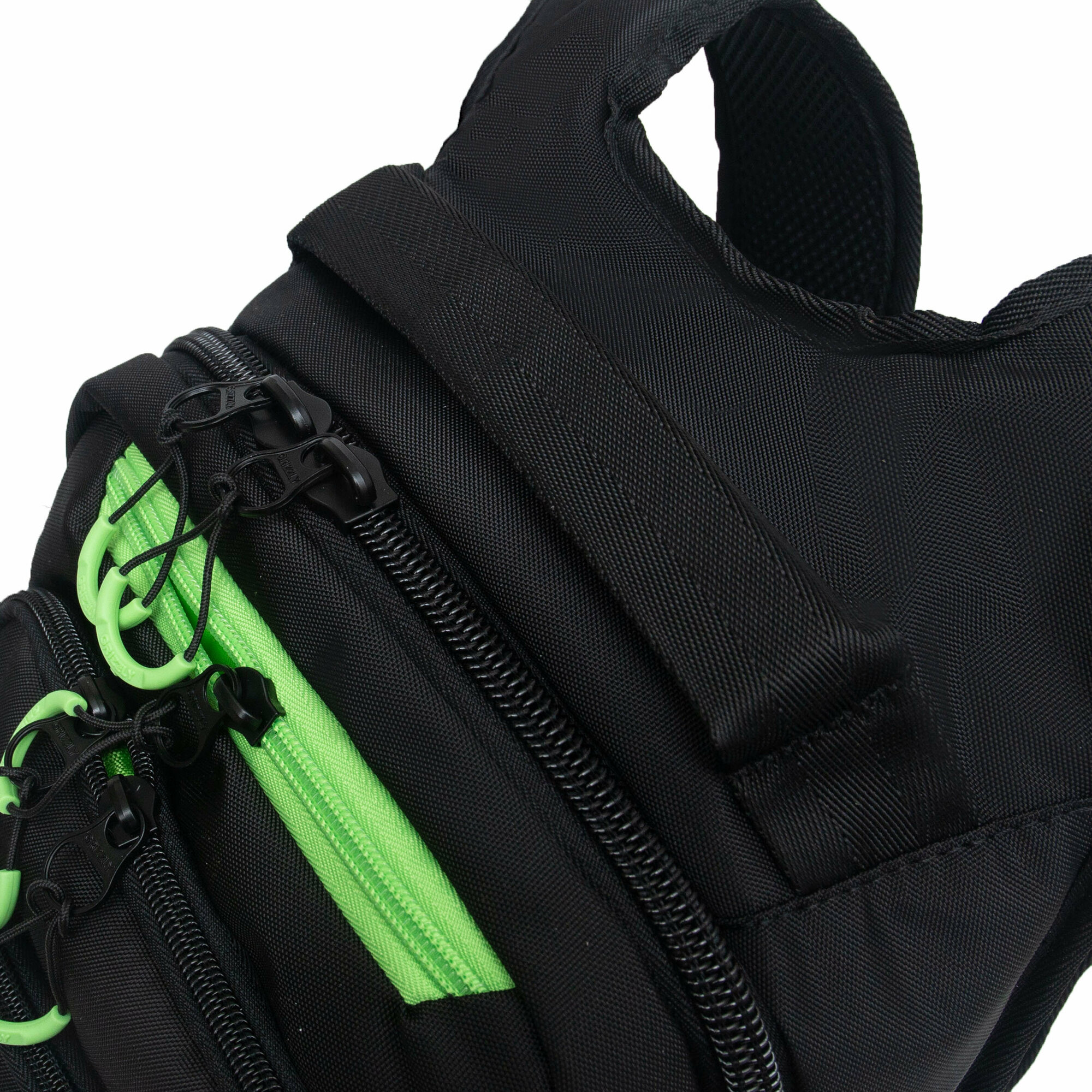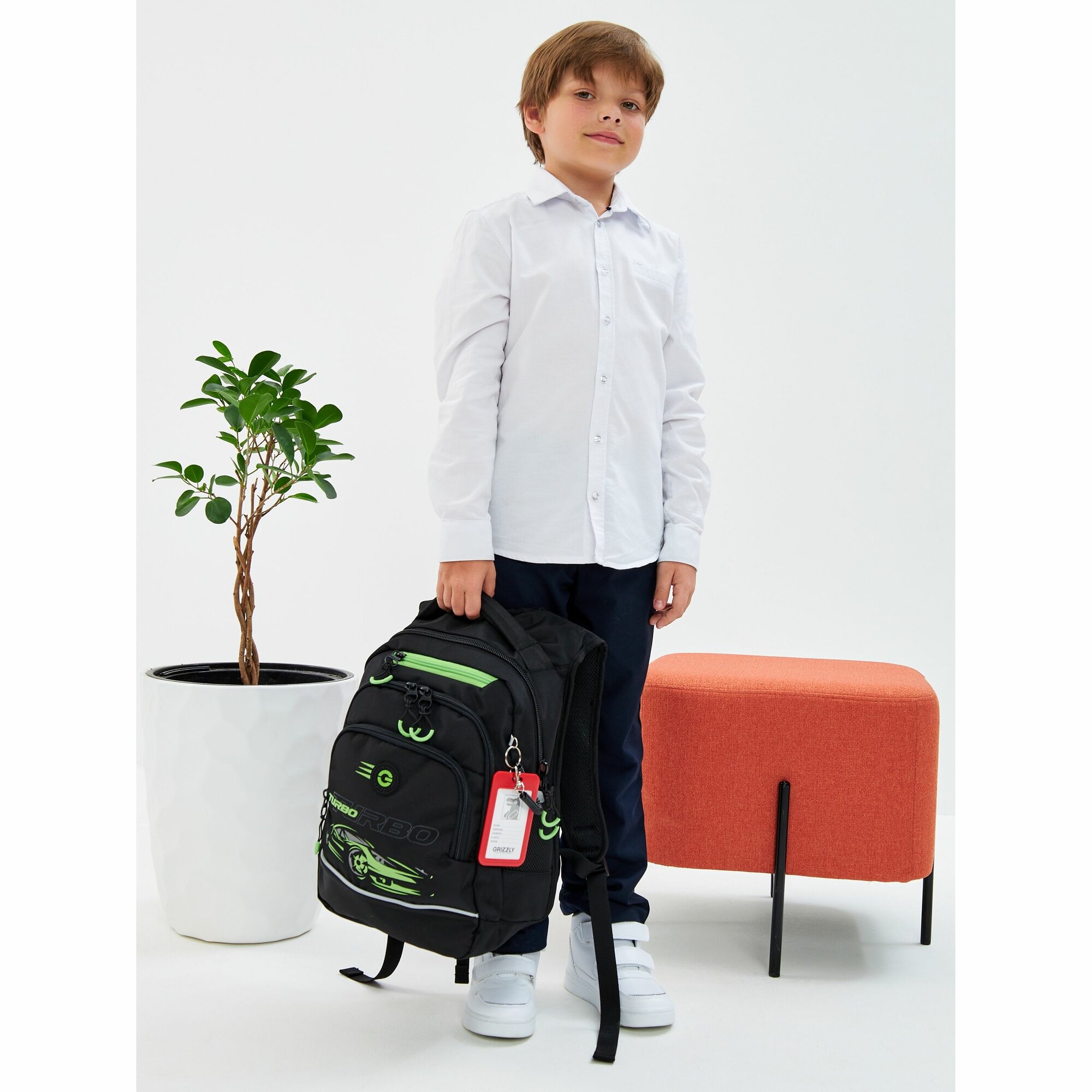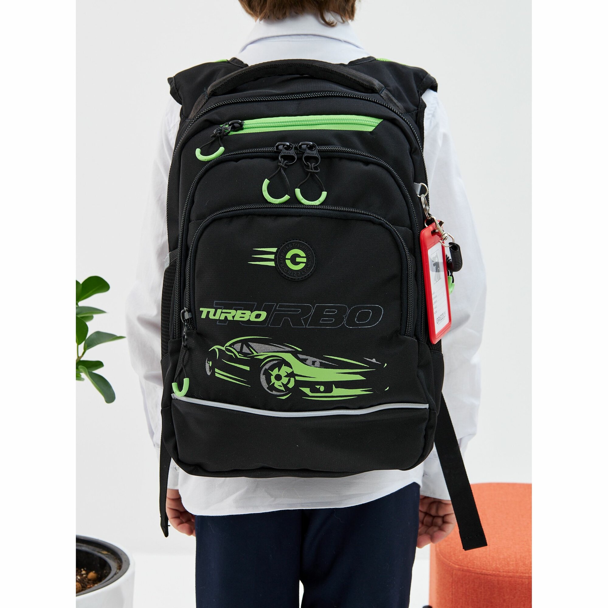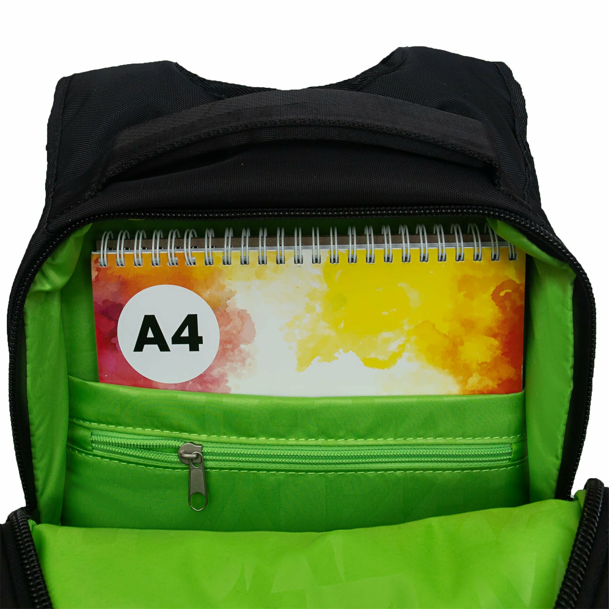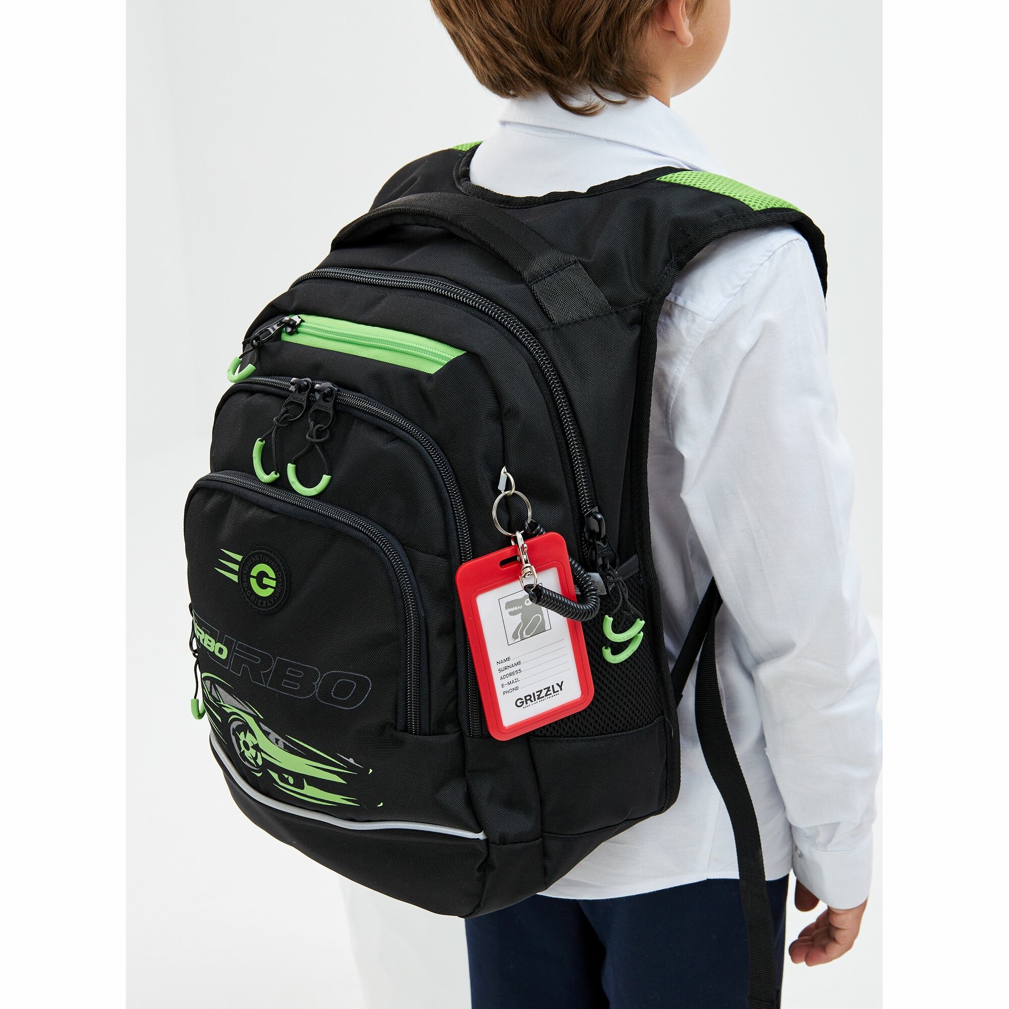 Школьный рюкзак с эргономичной спинкой GRIZZLY RB-450-1/3 черный - зеленый, грудная стяжка, 2 отделения, 636 грамм, 40x25x22см, 14.5л.