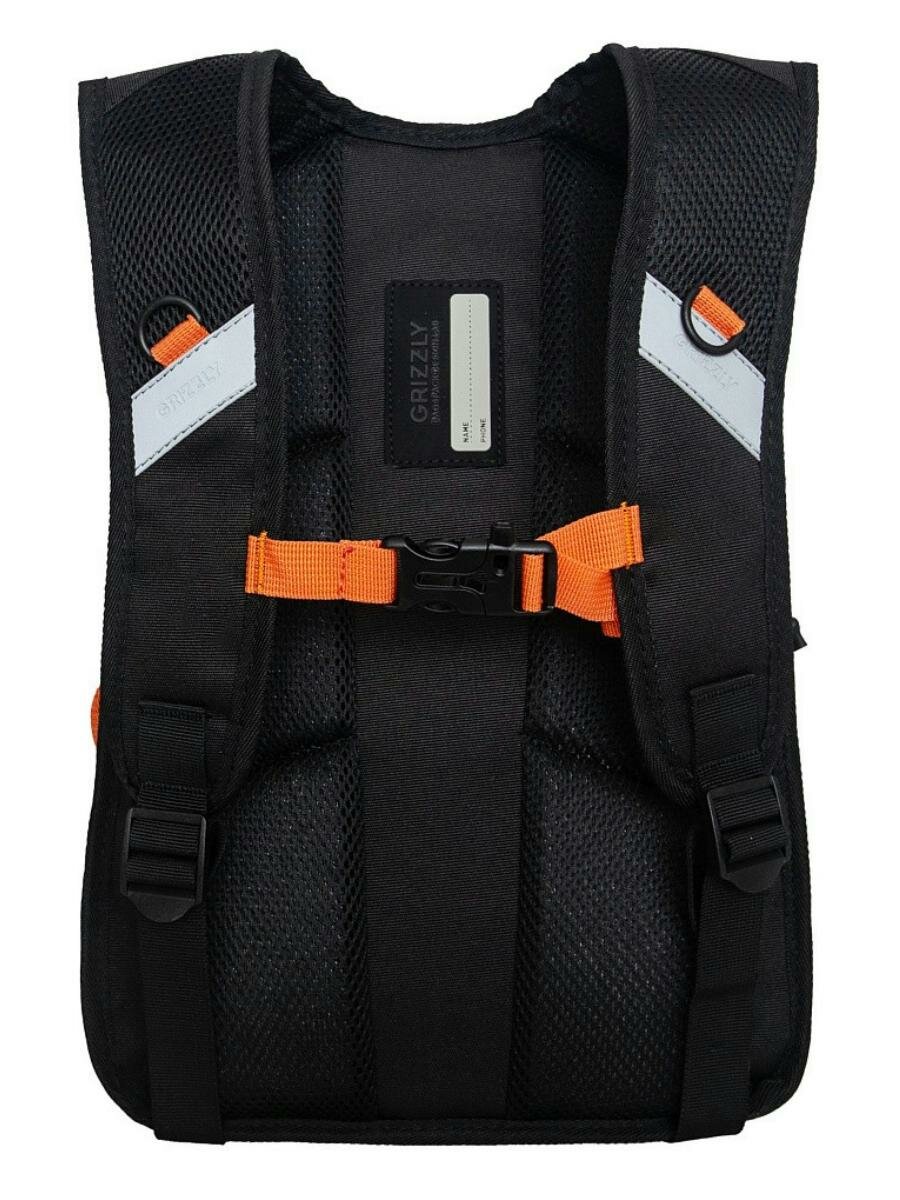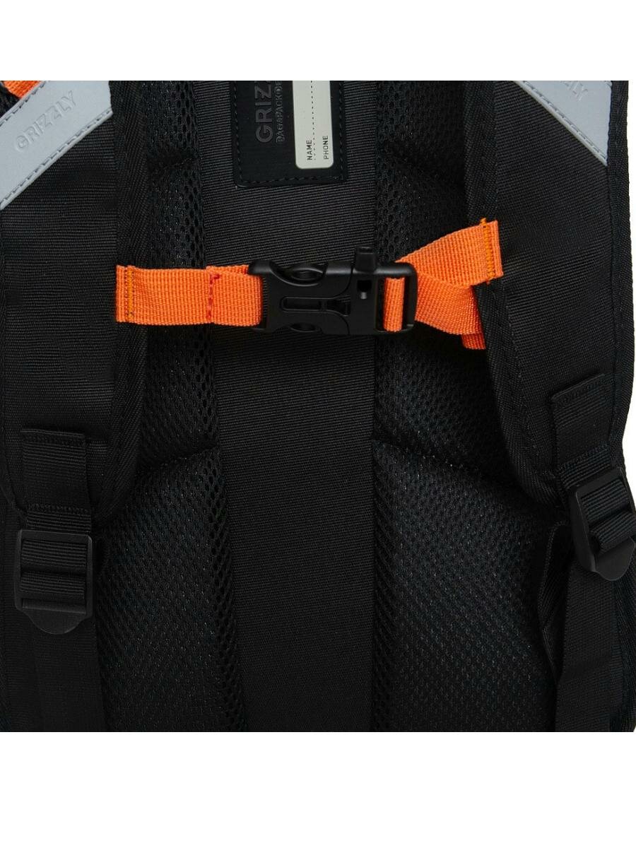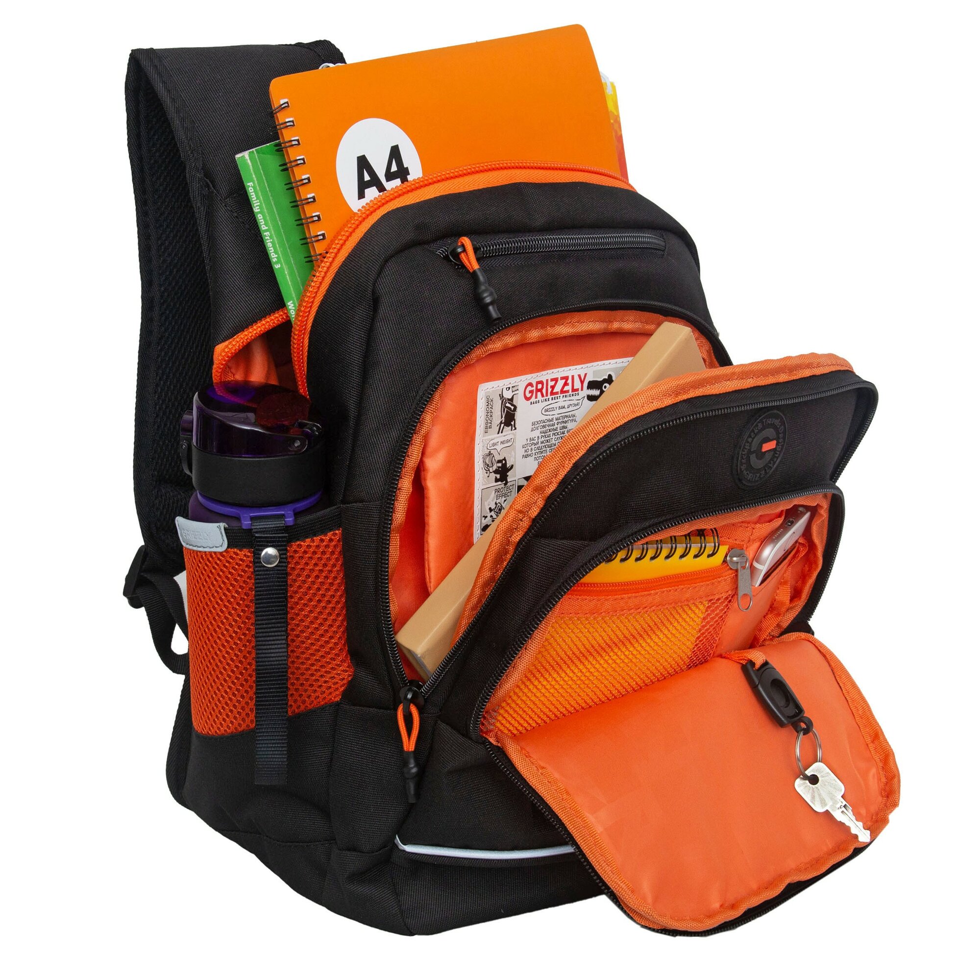 Купить Рюкзак школьный, 40 х 25 х 22 см, Grizzly, эргономичная спинка, отделение для ноутбука, чёрный/оранжевый