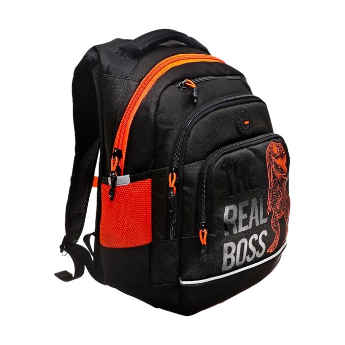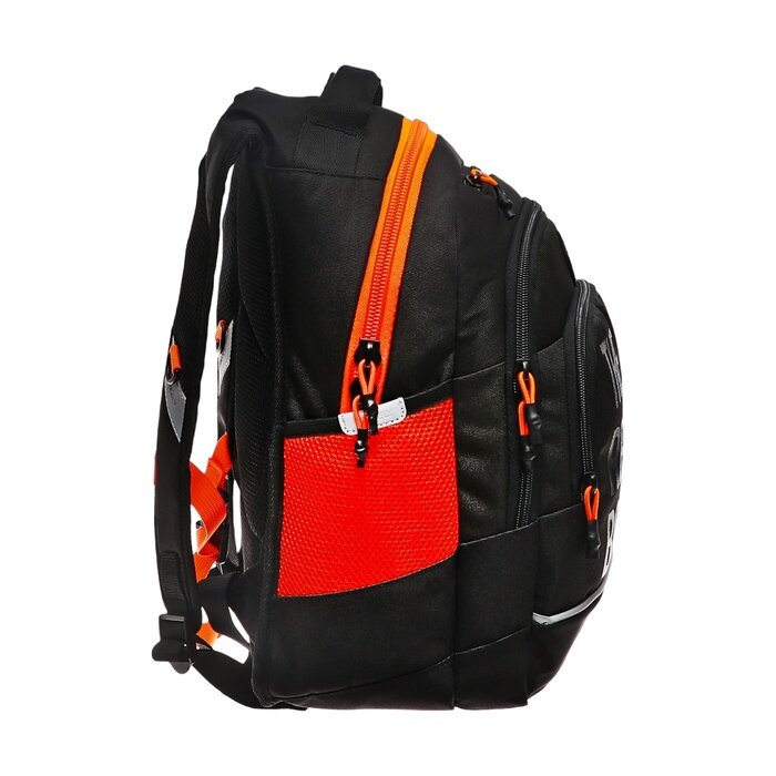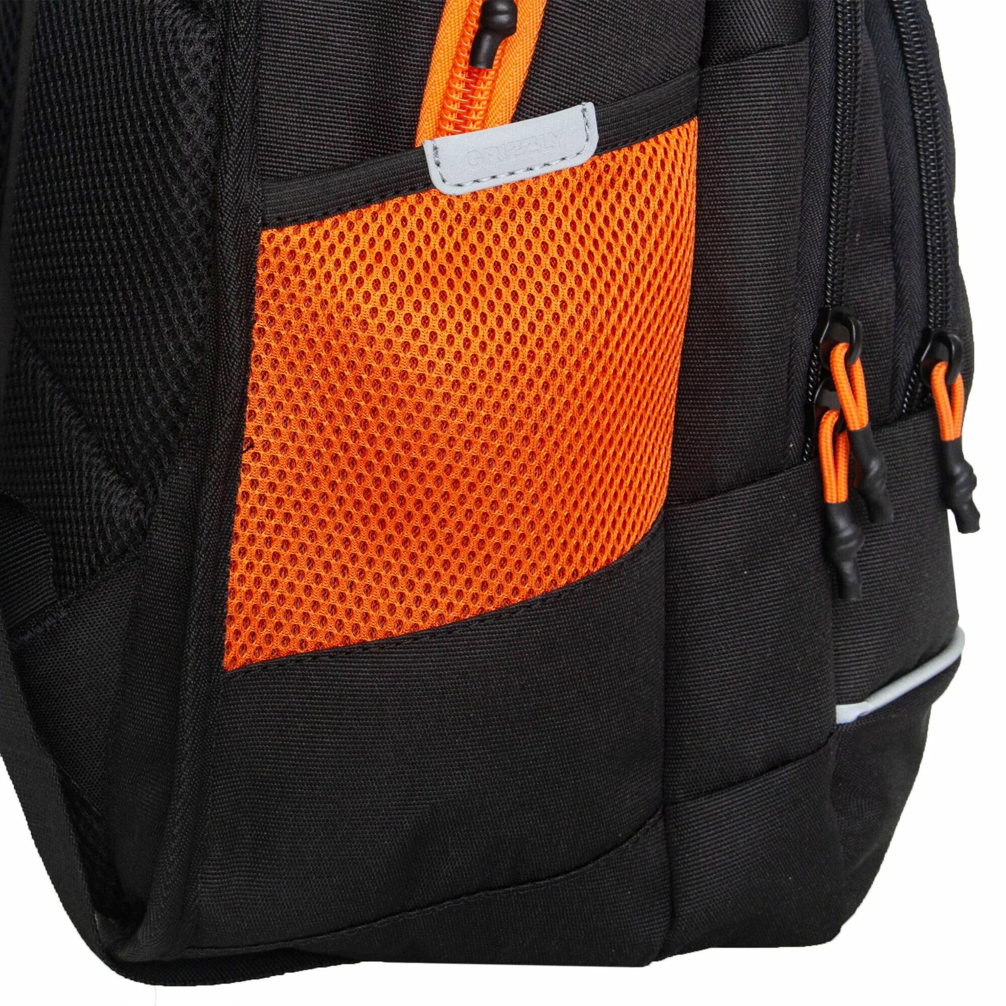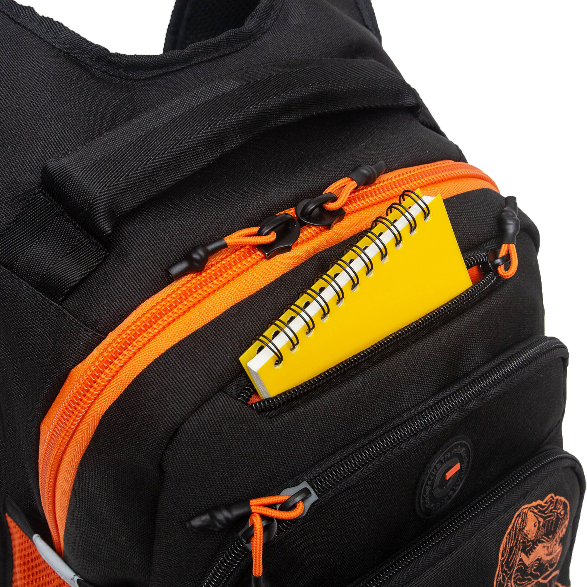 Купить Рюкзак школьный, 40 х 25 х 22 см, Grizzly, эргономичная спинка, отделение для ноутбука, чёрный/оранжевый