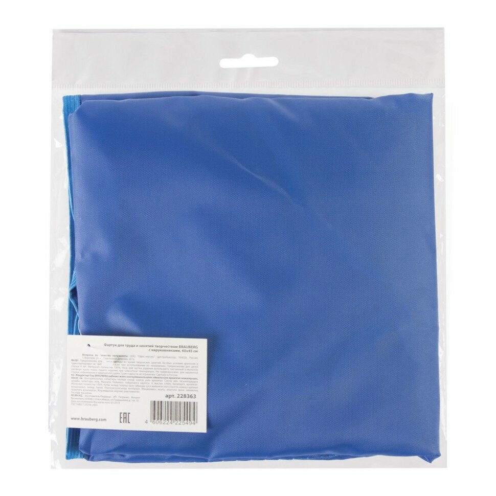 Накидка с нарукавниками для труда Пифагор, 3 кармана, увеличенный размер, 45x60 см, синий, 228363