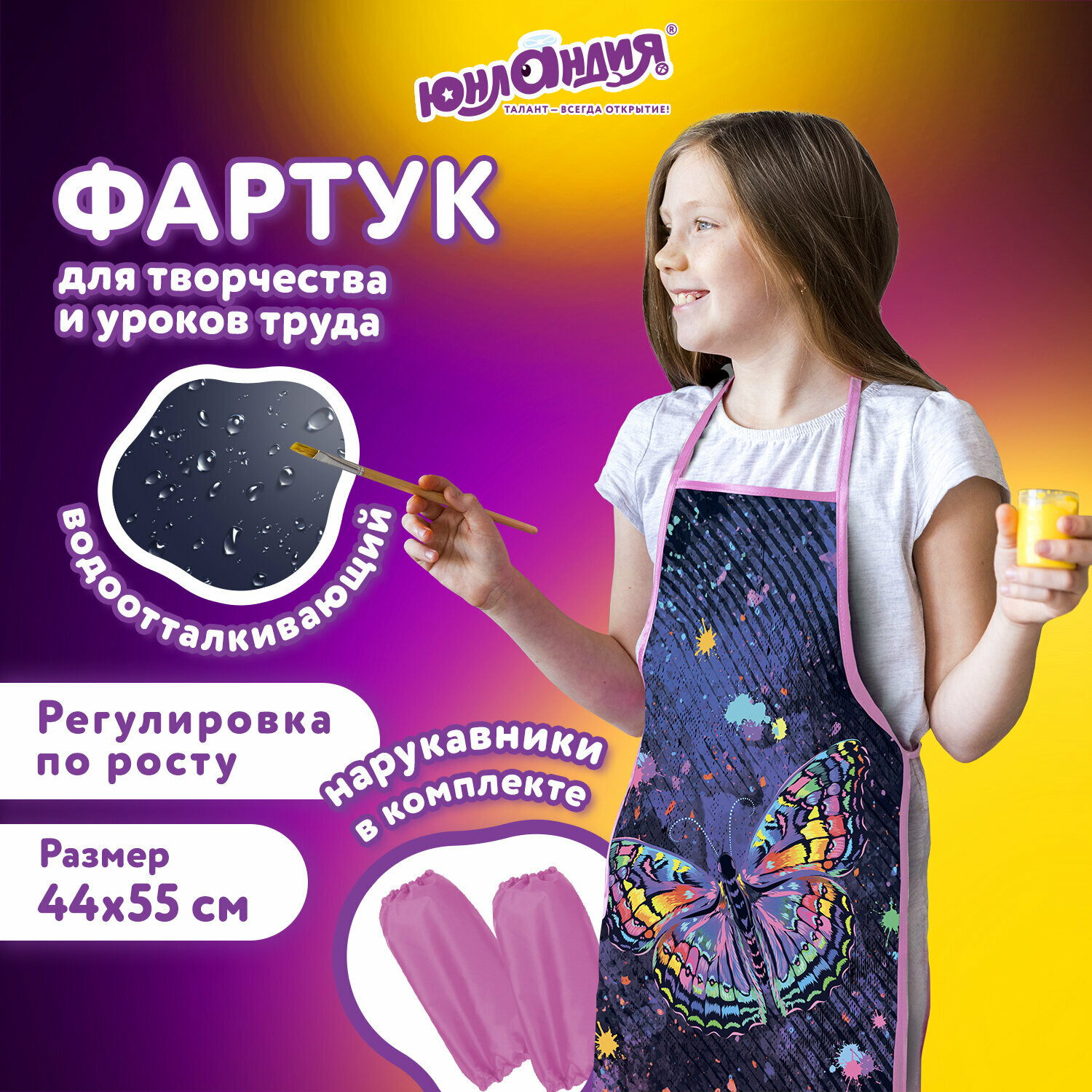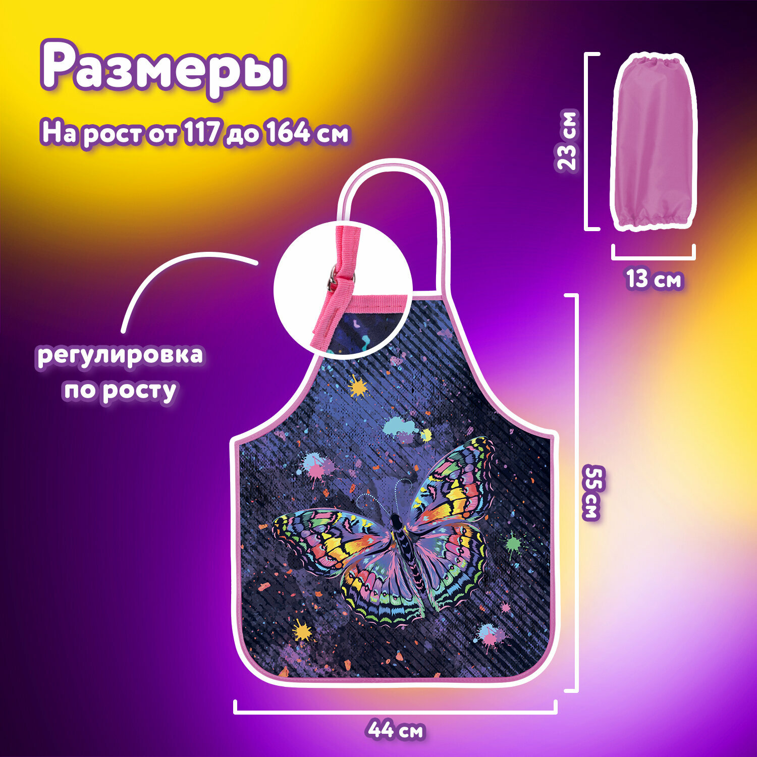 Фартук с нарукавниками для уроков труда юнландия, 45х54 см, "Colorful butterfly",