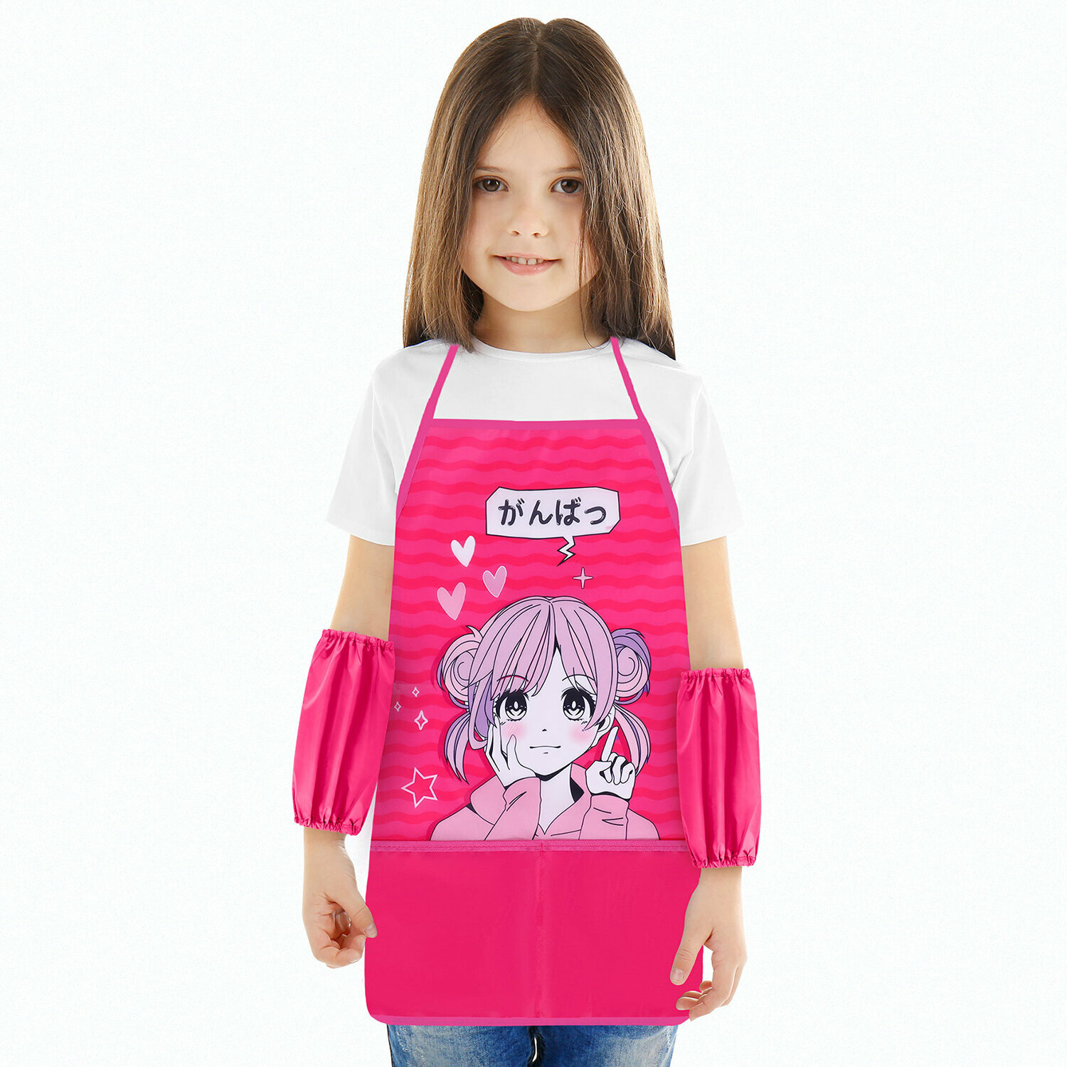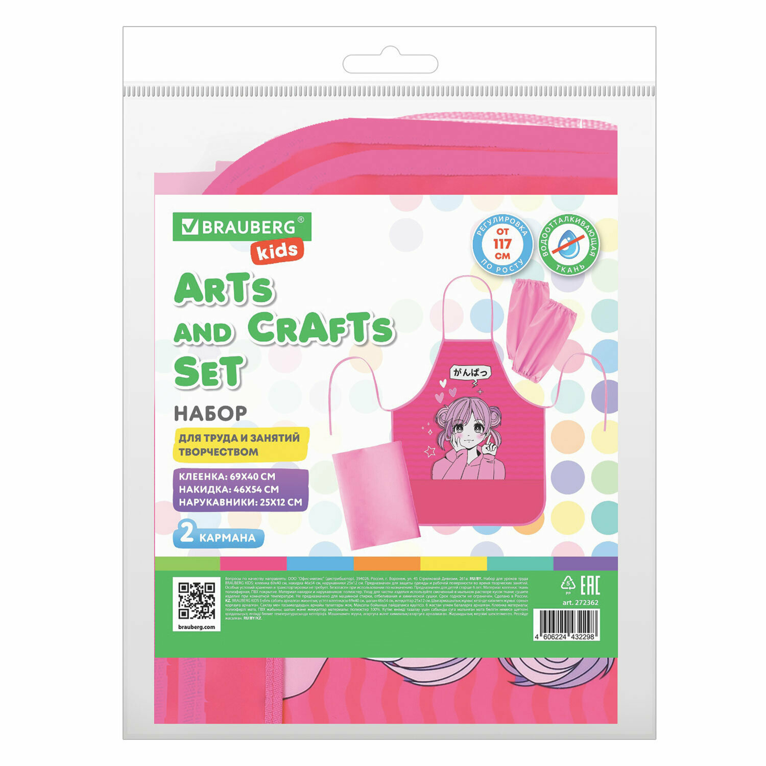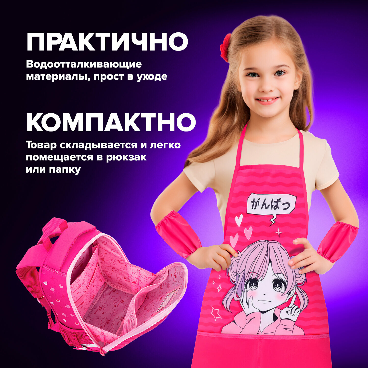 Фартук для рисования и труда с нарукавниками для девочек в школу, клеенка ПВХ на стол детская, коврик подложка, Brauberg Kids Anime Style, 272362 интересное: