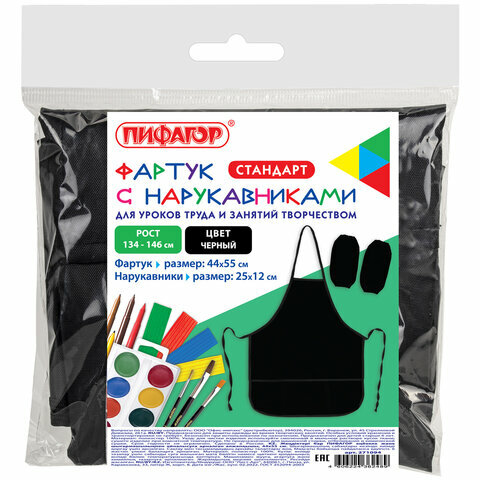 Купить Накидка фартук с нарукавниками для труда пифагор, 3 кармана, стандартный размер, 44x55 см, черный, 2