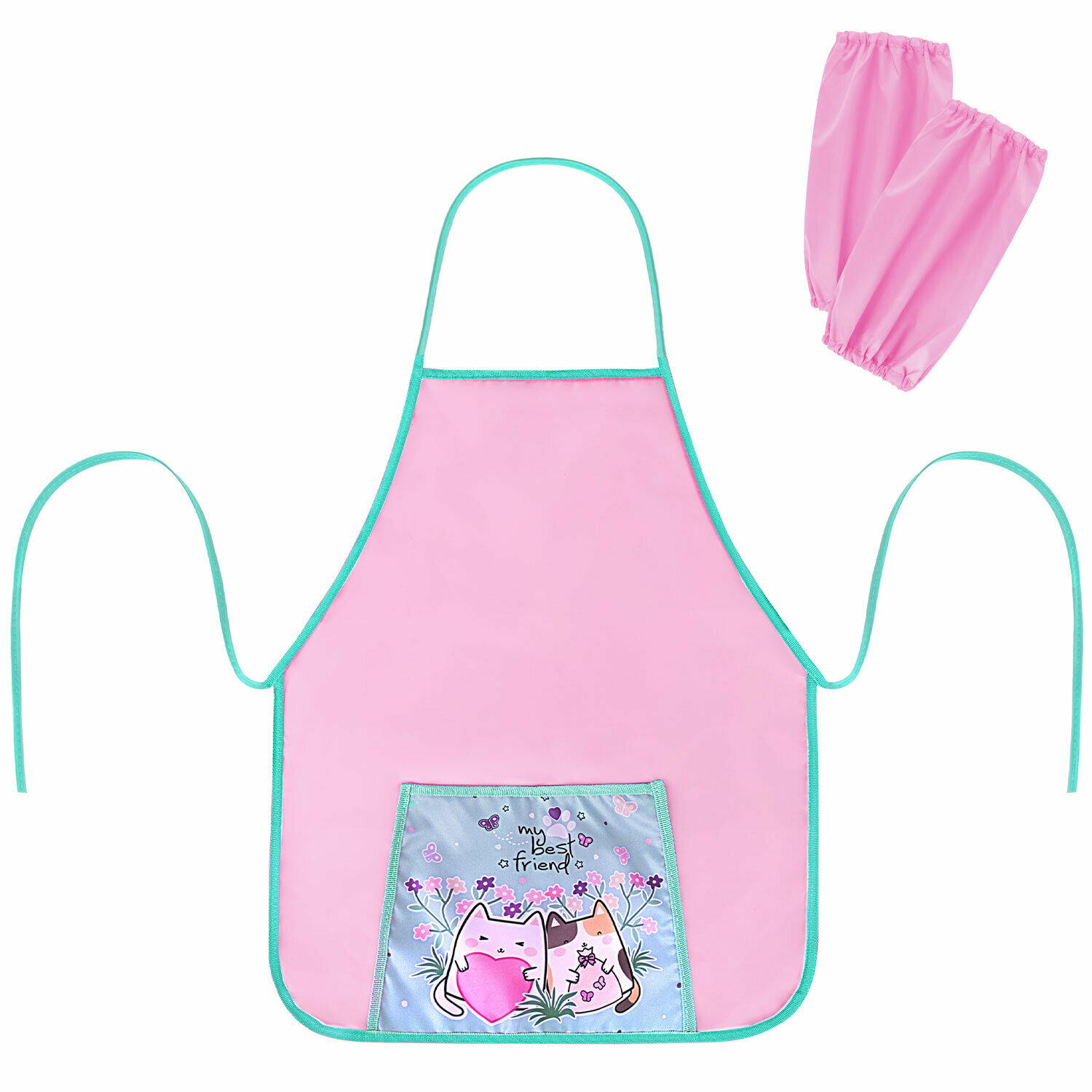 Купить Накидка фартук с нарукавниками для труда пифагор, 1 карман, 46х54 см, "Cat friends", 272458, в комплекте 1шт