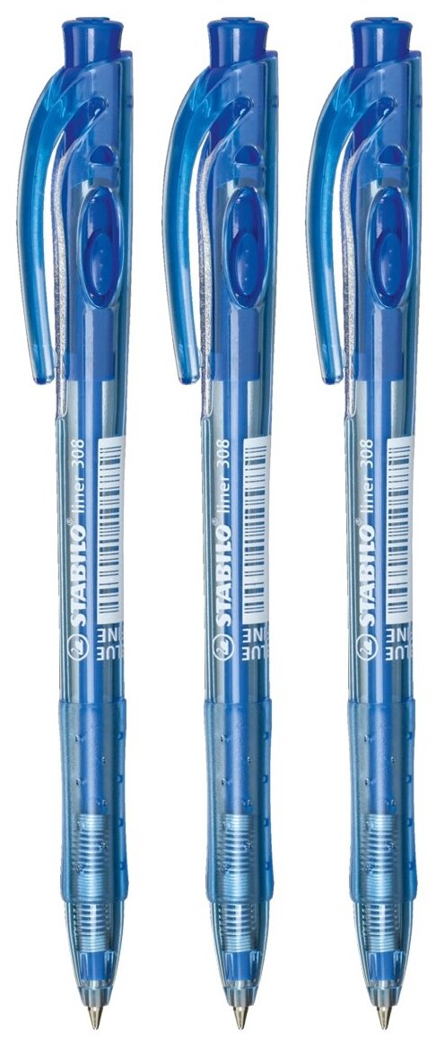Ручка шариковая автомат. STABILO liner 308 F new, 3шт/уп, цв. чер.син