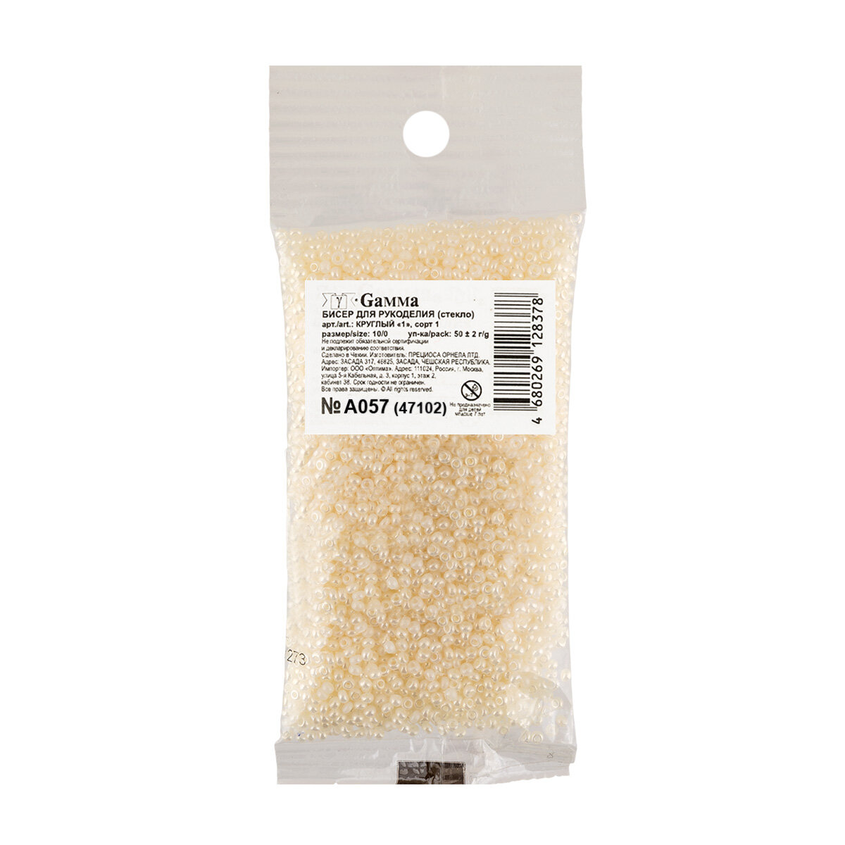Бисероплетение Чехия Gamma круглый 1 10/0 2.3 мм 50 г 1-й сорт A066 белый ( 57102 )
