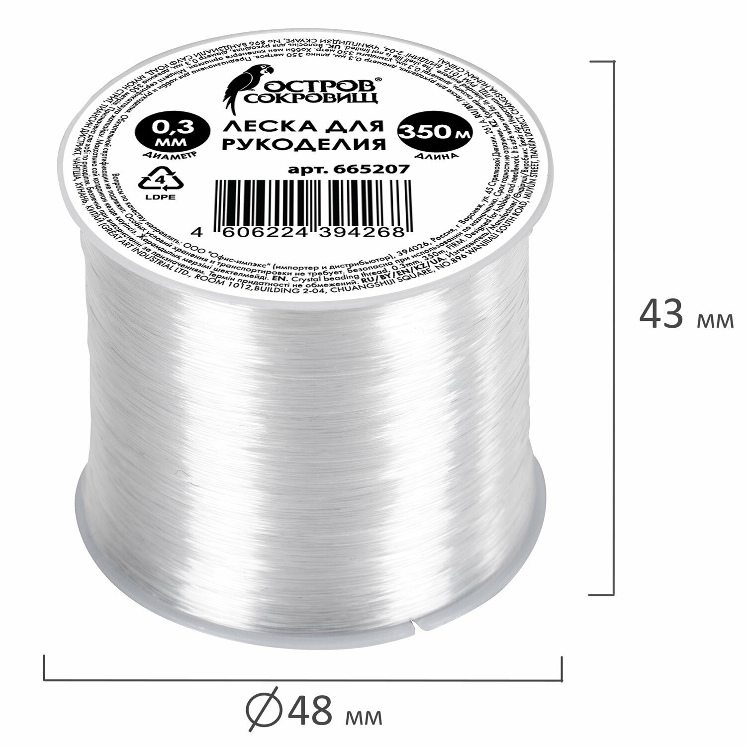 Купить Леска для рукоделия, диаметр 0,3 мм, длина 350 м, прозрачная, Прочная, Остров Сокровищ, 665207