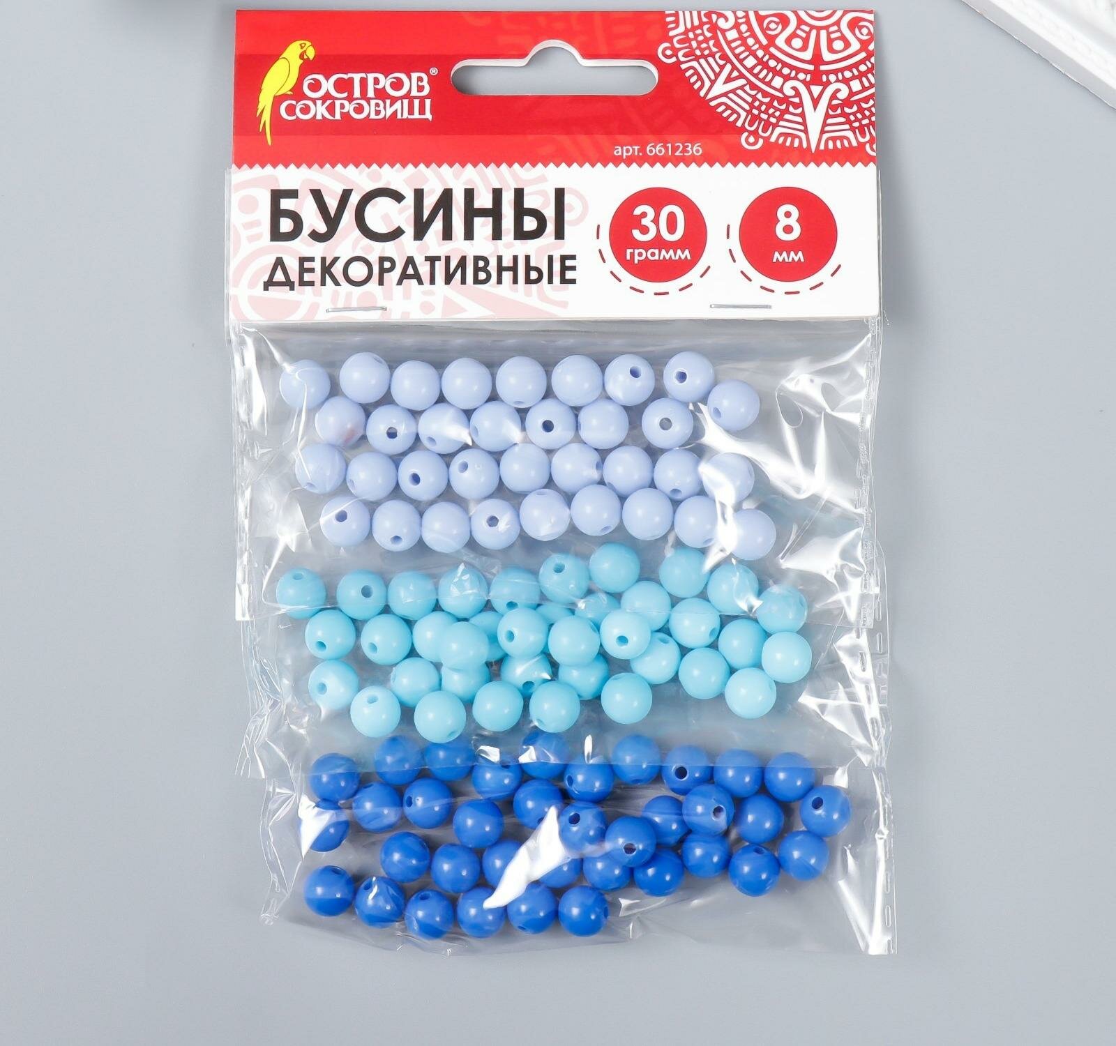 Бусины для творчества "Шарики", 8 мм, 30 грамм, бирюзовые, светло-голубые, голубые, остров сокровищ, 661236