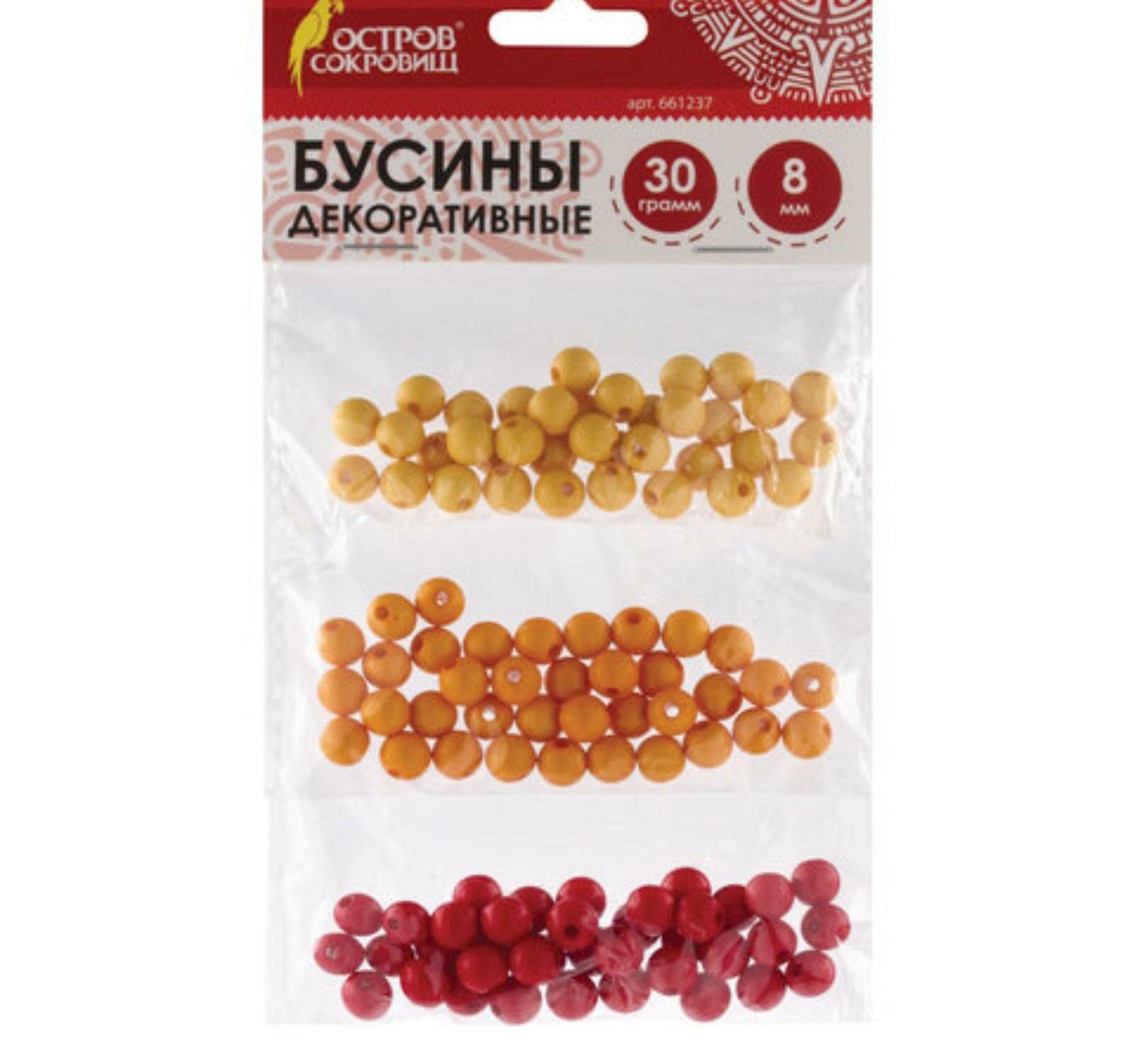 Бусины для творчества "Шарики", 8 мм, 30 грамм, желтые, оранжевые, зеленые, остров сокровищ, 661234