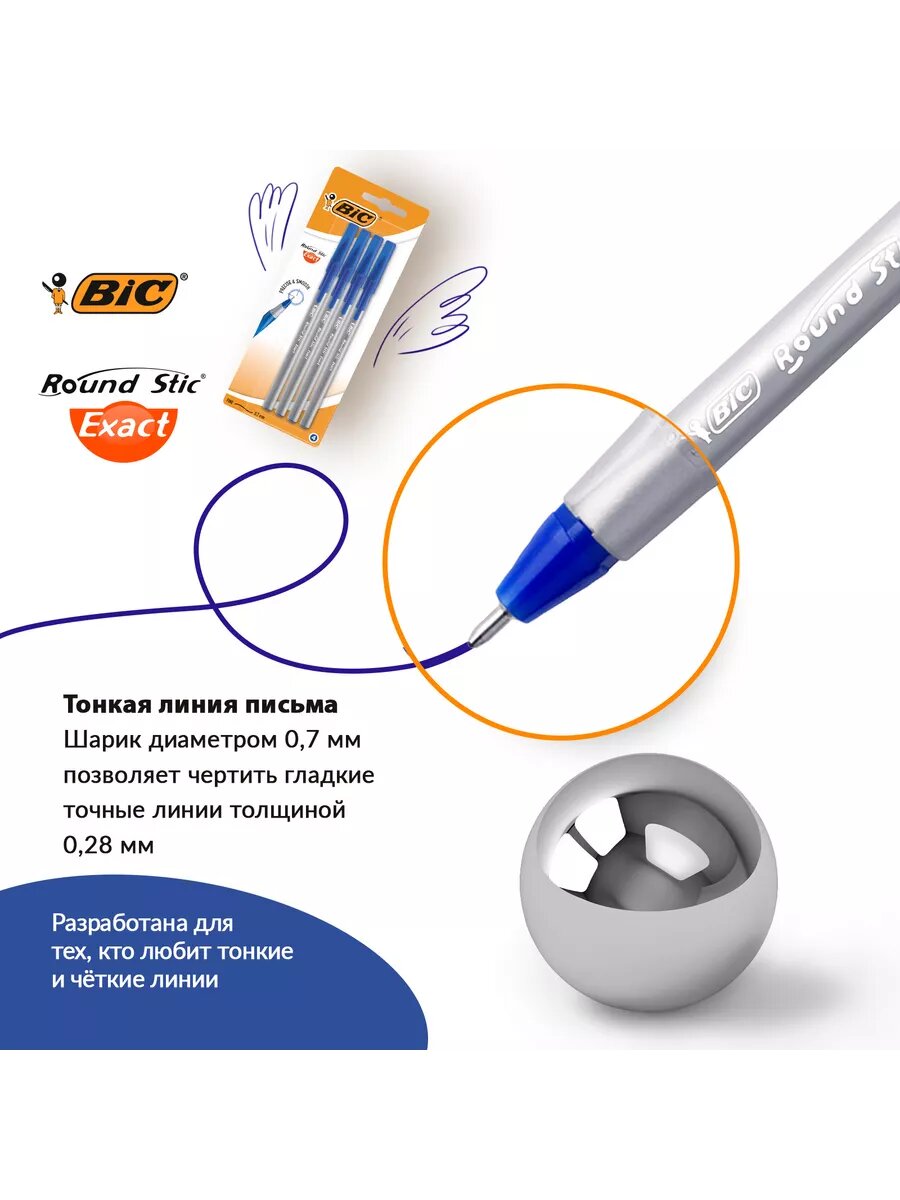 СохранитьBIC Набор шариковых ручек Round Stic Exact, 0.7 мм (932857), 932857, синий цвет чернил, 4 шт. интересное: