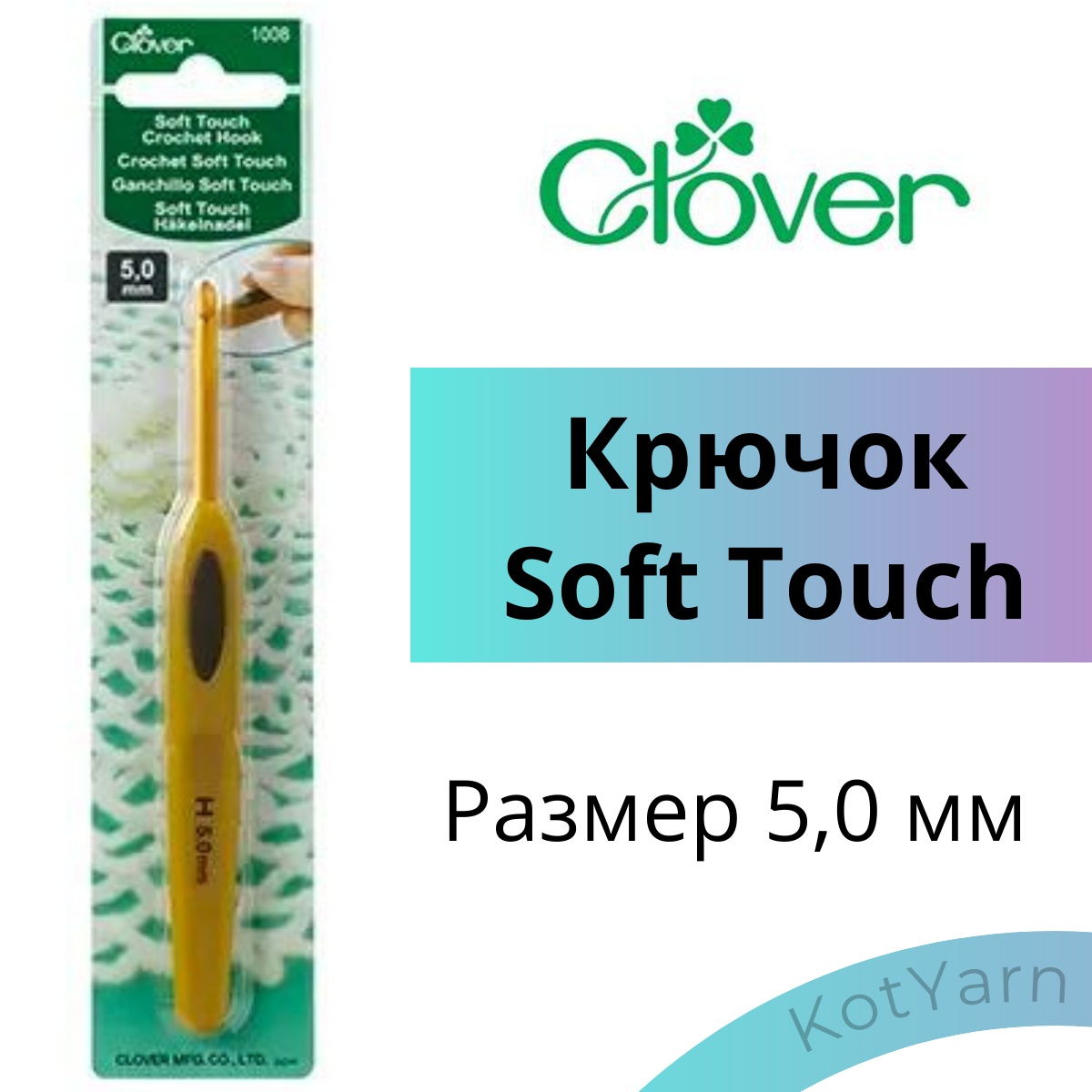 Купить Крючок для вязания Clover Soft Touch, 5,0 мм
