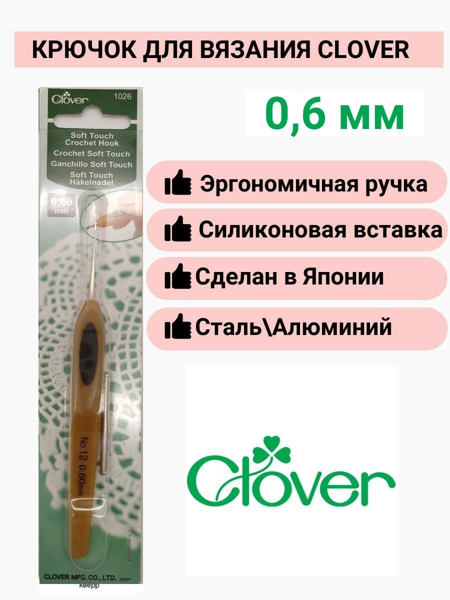 Купить Крючок для вязания Soft touch Clover 0.60 мм, (1026)