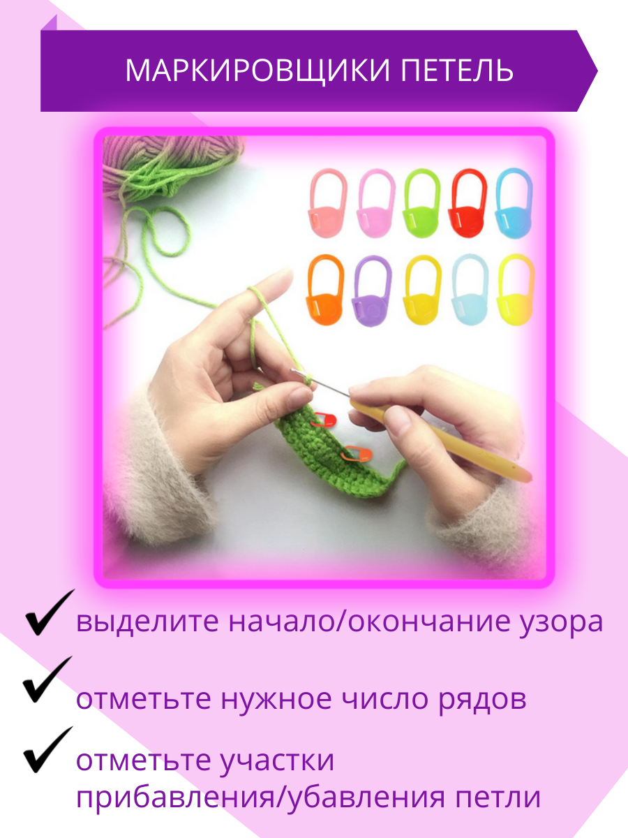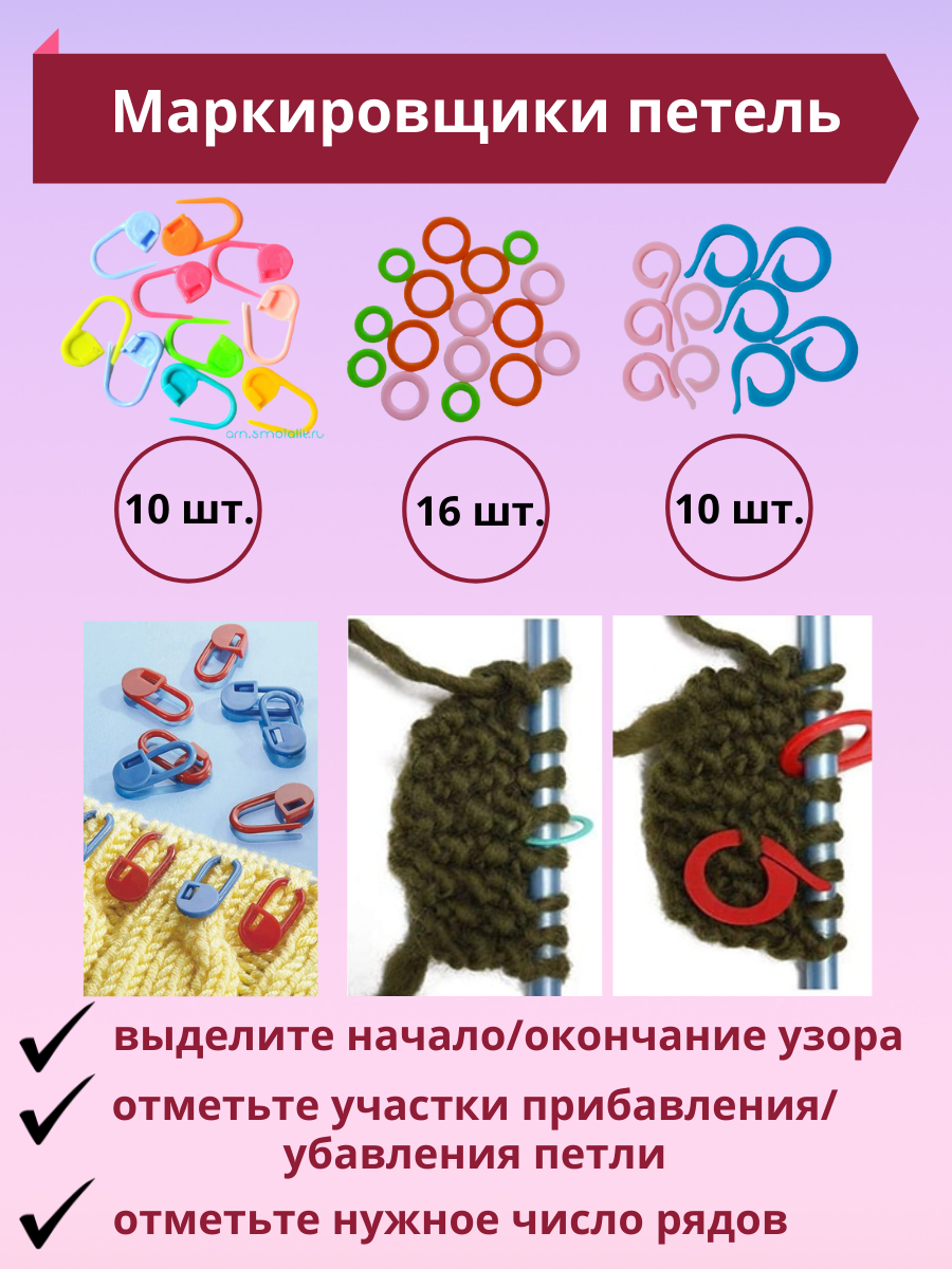 | Комплектация | сумка-пенал 1 шт., крючки для вязания 22 шт., металлические булавки для снятия петель; етлесъемные булавки 2 шт., наперсток металлический 1 шт.; лента измерительная 1 шт., ножницы для обрезки ниток 1 шт., фиксатор для спиц 2 шт.; маркеры для петель, маркировщики 20 шт., иглы пластиковые и стальные 19 шт.; счетчик рядов 2 шт., наконечник для спиц, заглушка для спиц 2 шт; кольца для вязания 15 шт., стальные булавки 10 шт.; линейка с калибровкой 1 шт. |