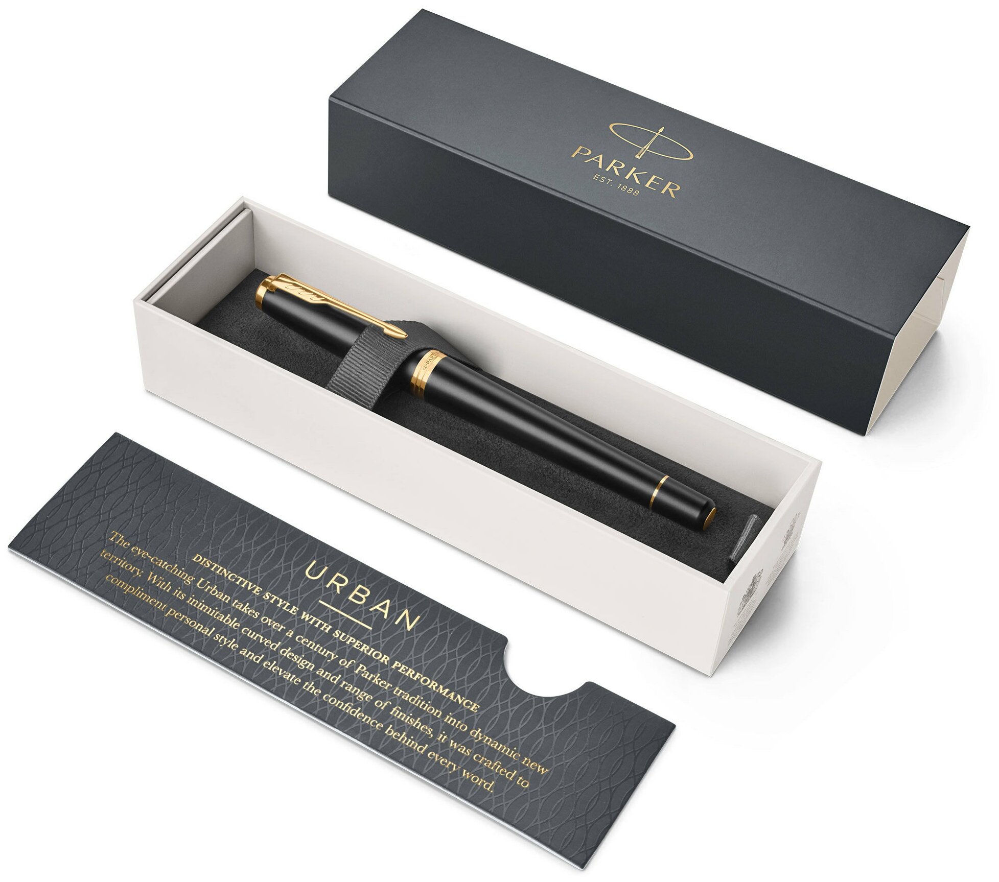Ручка перьевая PARKER Urban Core Muted Black GT, корпус черный матовый лак, позолоченные детали, синяя, 1931593