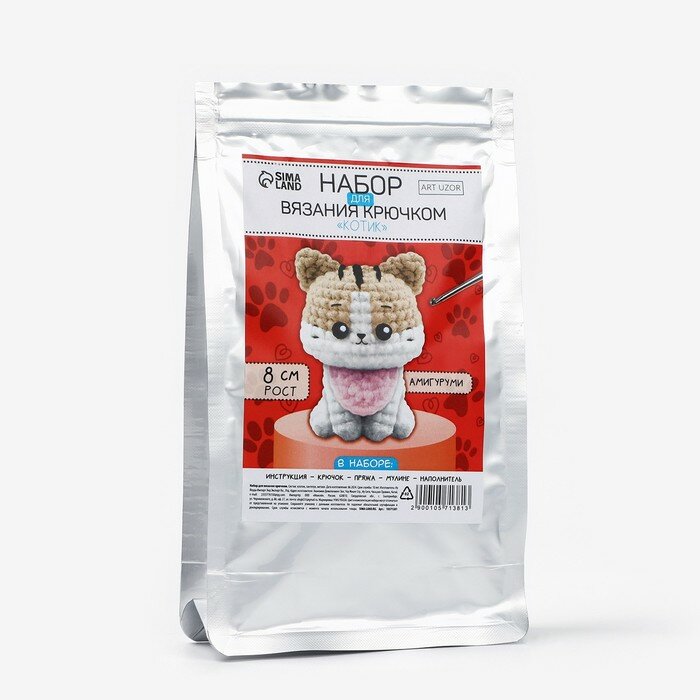 Купить Набор для вязания крючком. Амигуруми: мягкая игрушка своими руками «Котик», 8 см