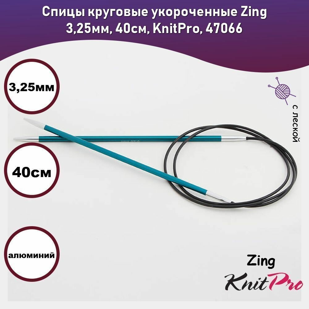 Спицы круговые Knit Pro Zing, 3,25 мм, 40 см, алюминий (KNPR.47066)