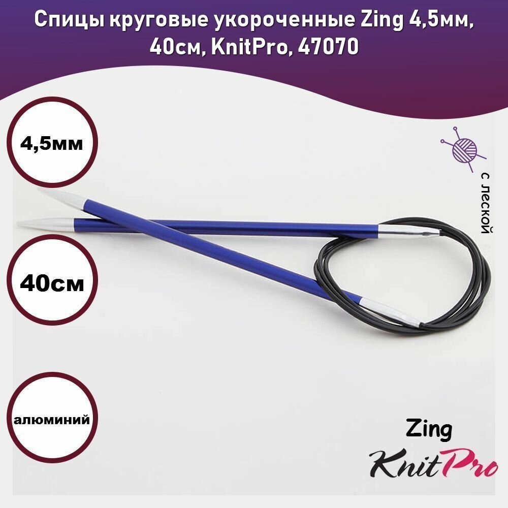 47070 Knit Pro Спицы круговые для вязания Zing 4,5мм/40см, алюминий