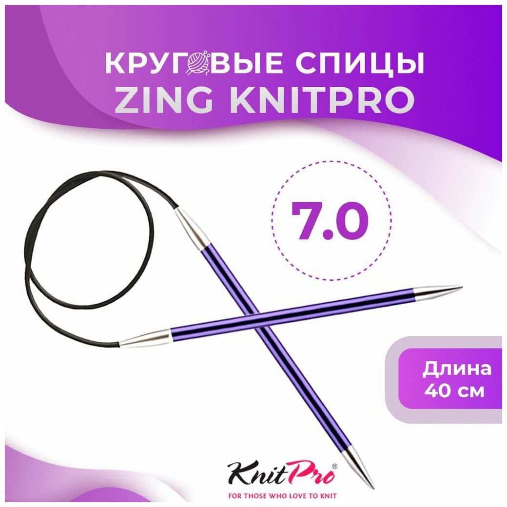 Купить 47075 Knit Pro Спицы круговые для вязания Zing 7мм/40см, алюминий, аметистовый (фиолетовый)