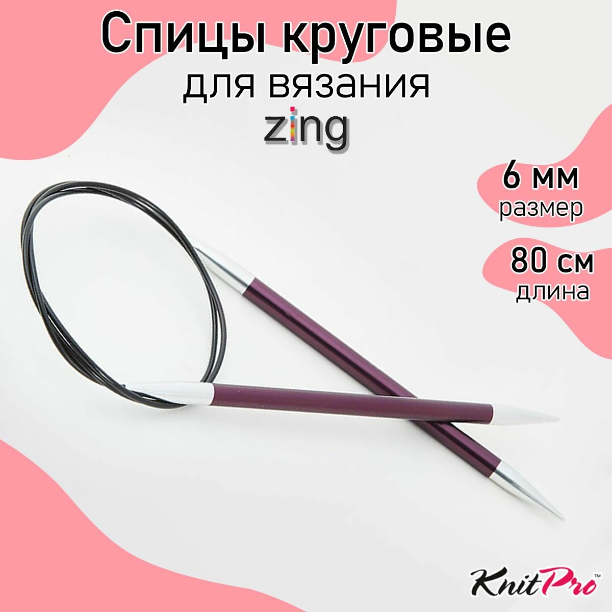 Купить 47133 Knit Pro Спицы круговые для вязания Zing 6мм/80см, алюминий