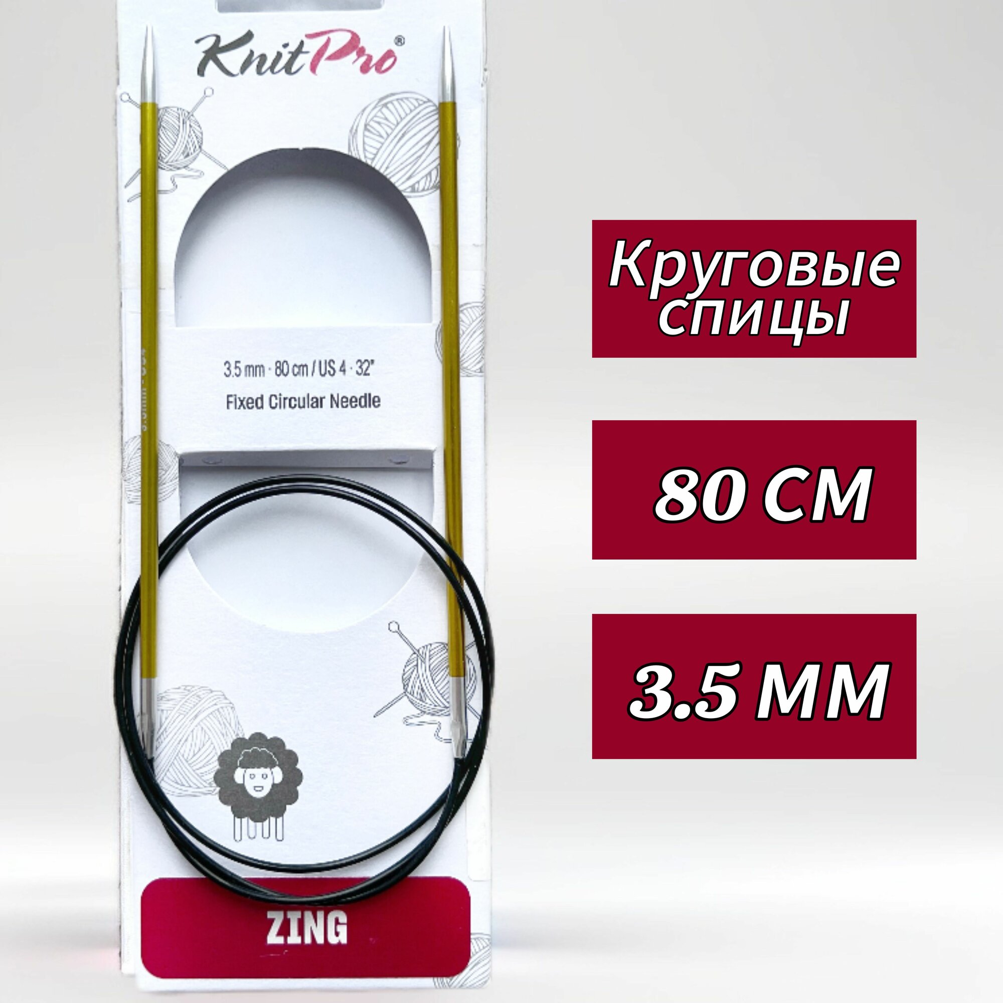 СохранитьСпицы круговые Knit Pro Zing, 3,5 мм, 80 см, алюминий (KNPR.47127) интересное:
