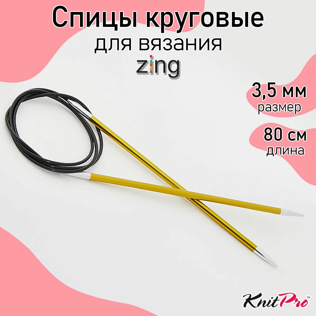 Спицы круговые Knit Pro Zing, 3,5 мм, 80 см, алюминий (KNPR.47127)