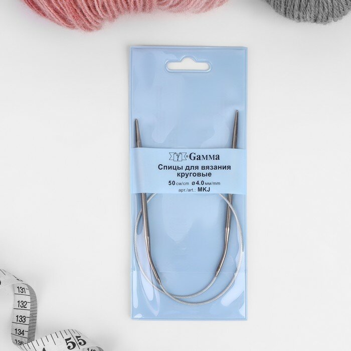 Купить Спицы круговые, для вязания, с металлическим тросом, d = 4 мм, 50 см