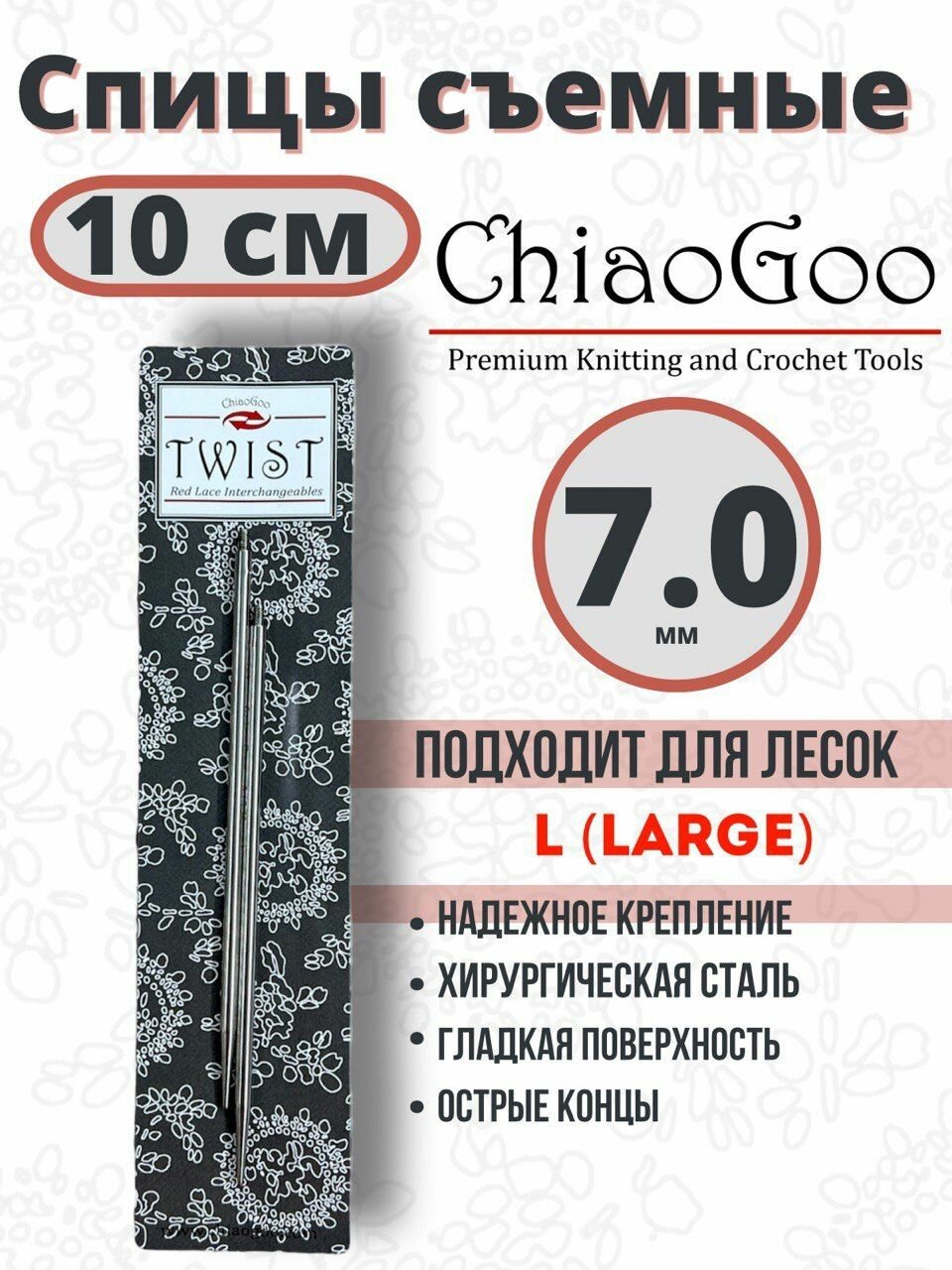 Спицы съёмные металлические ChiaoGoo 10см 7,0мм Large TWIST Lace Tips