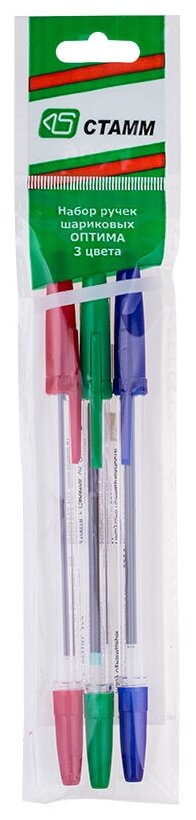 Набор шариковых ручек СТАММ Оптима 3шт., 03цв., 0,7мм, европодвес ( Артикул 069446 )