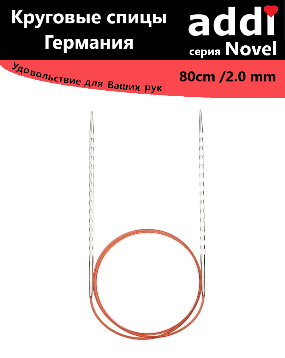 Спицы круговые Addi 2,25 мм, 80 см, addiNovel металлические c квадратным кончиком супергладкие