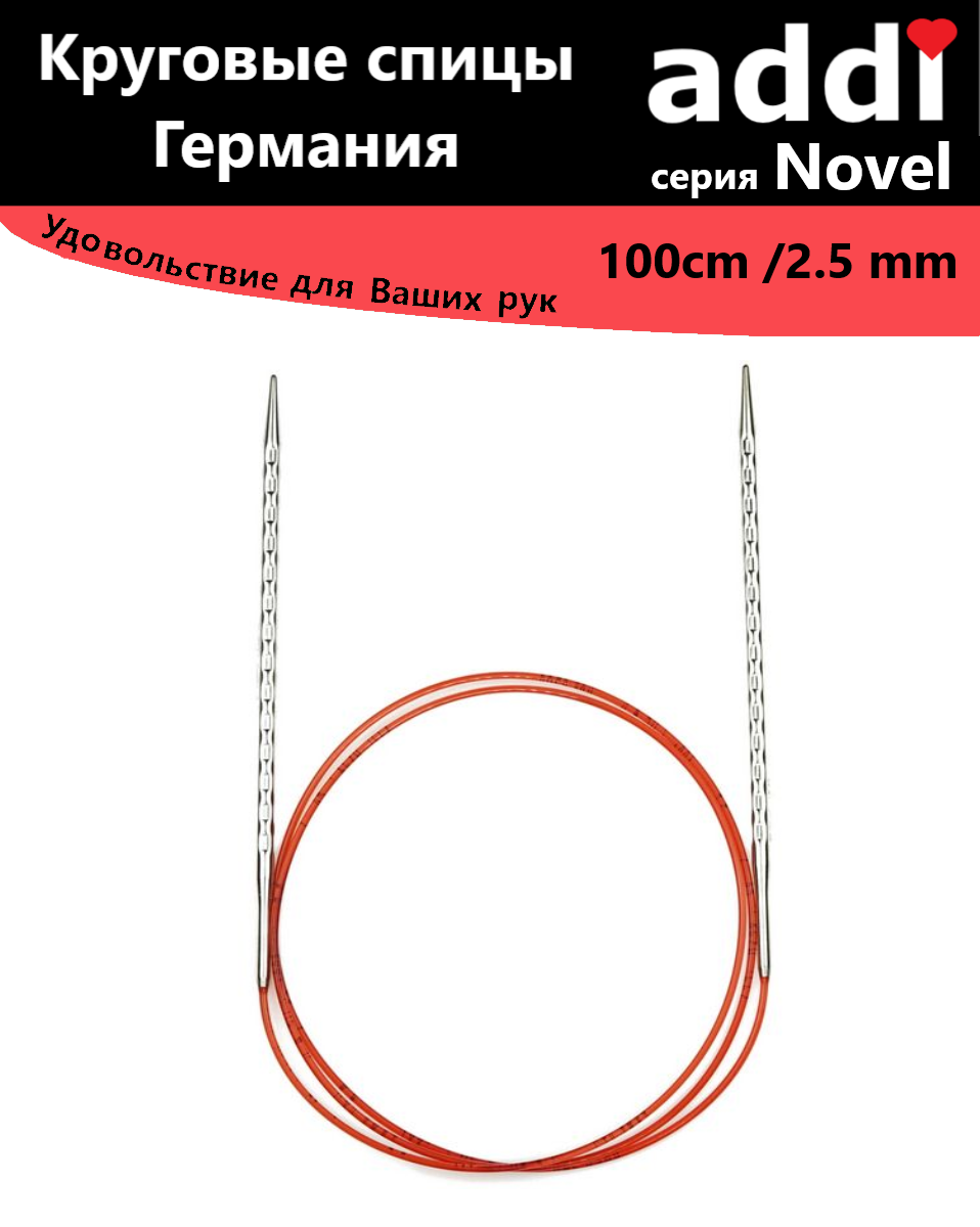 Купить Спицы круговые Addi 2,5 мм, 100 см, addiNovel металлические c квадратным кончиком супергладкие