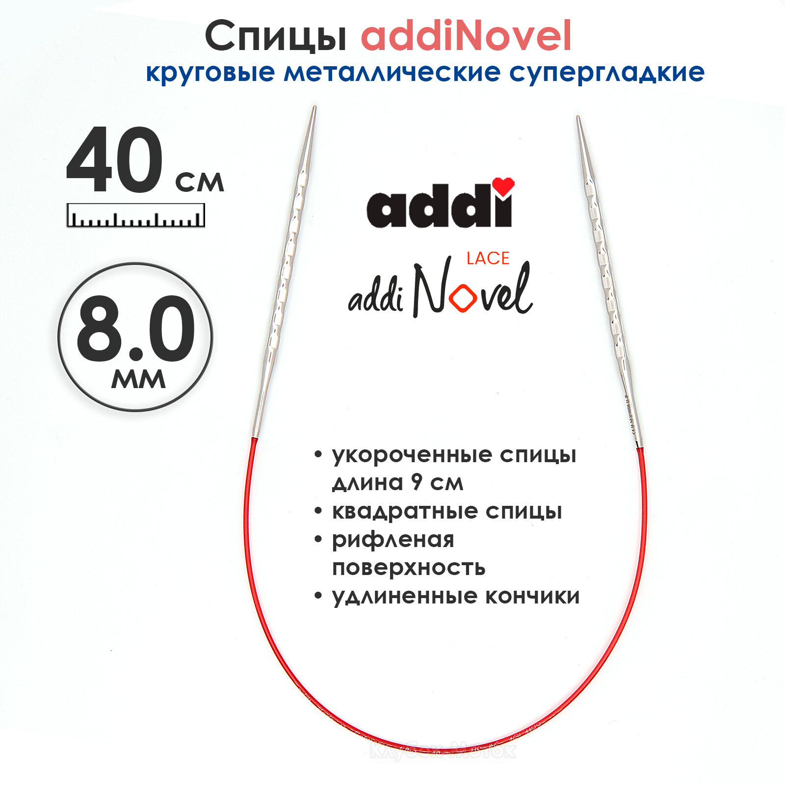 Купить Addi 717-7 Спицы металлические круговые супергладкие c квадратным кончиком addiNovel 40см #717-7/8-40 Addi 8.0