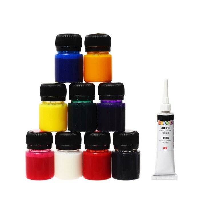 Купить Набор витражных красок по стеклу Decola, 9 цветов х 20 мл + контур, 42411065