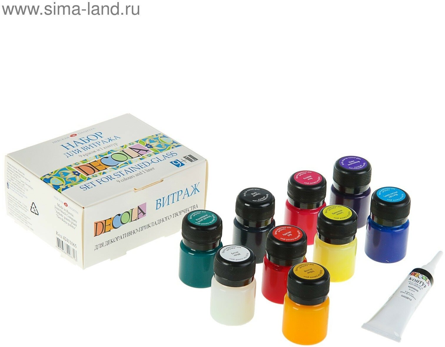 Набор витражных красок по стеклу Decola, 9 цветов х 20 мл + контур, 42411065 интересное: